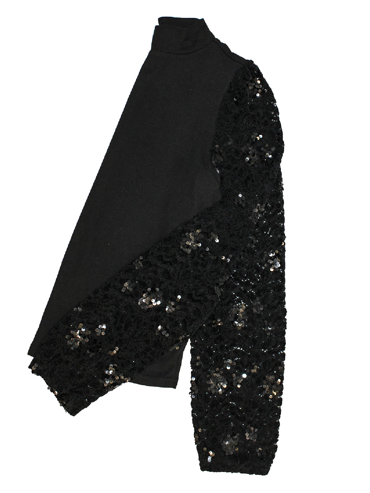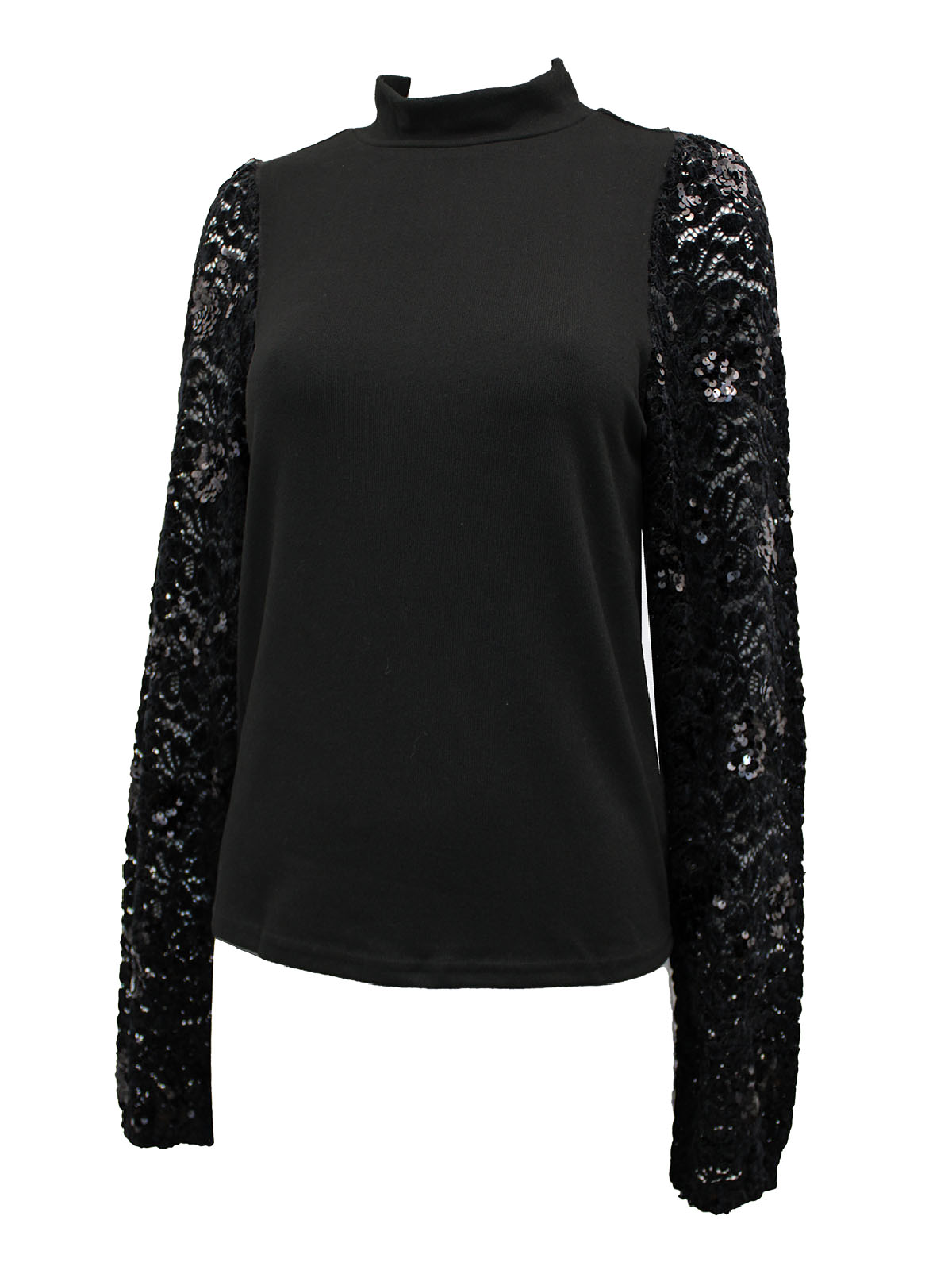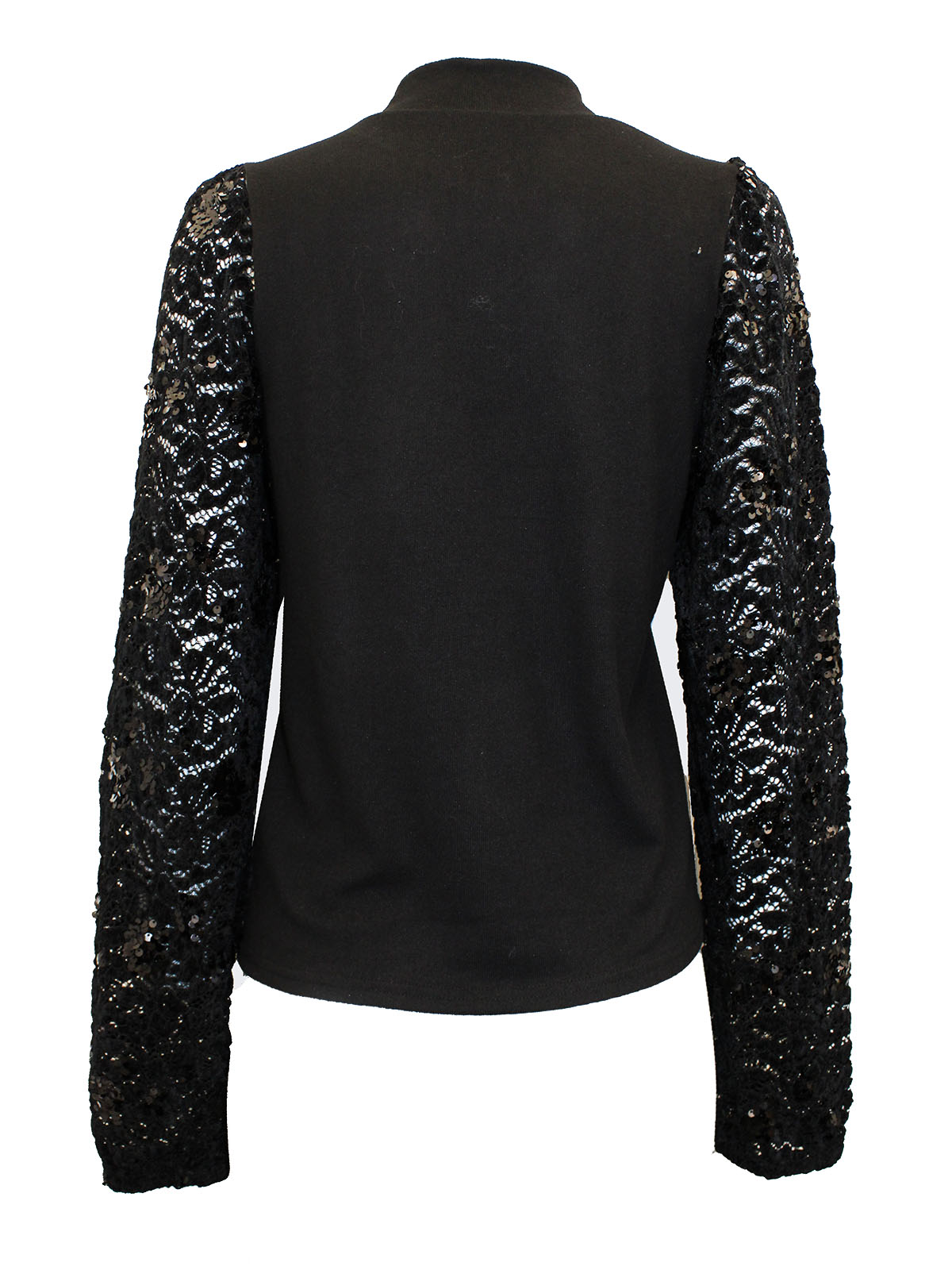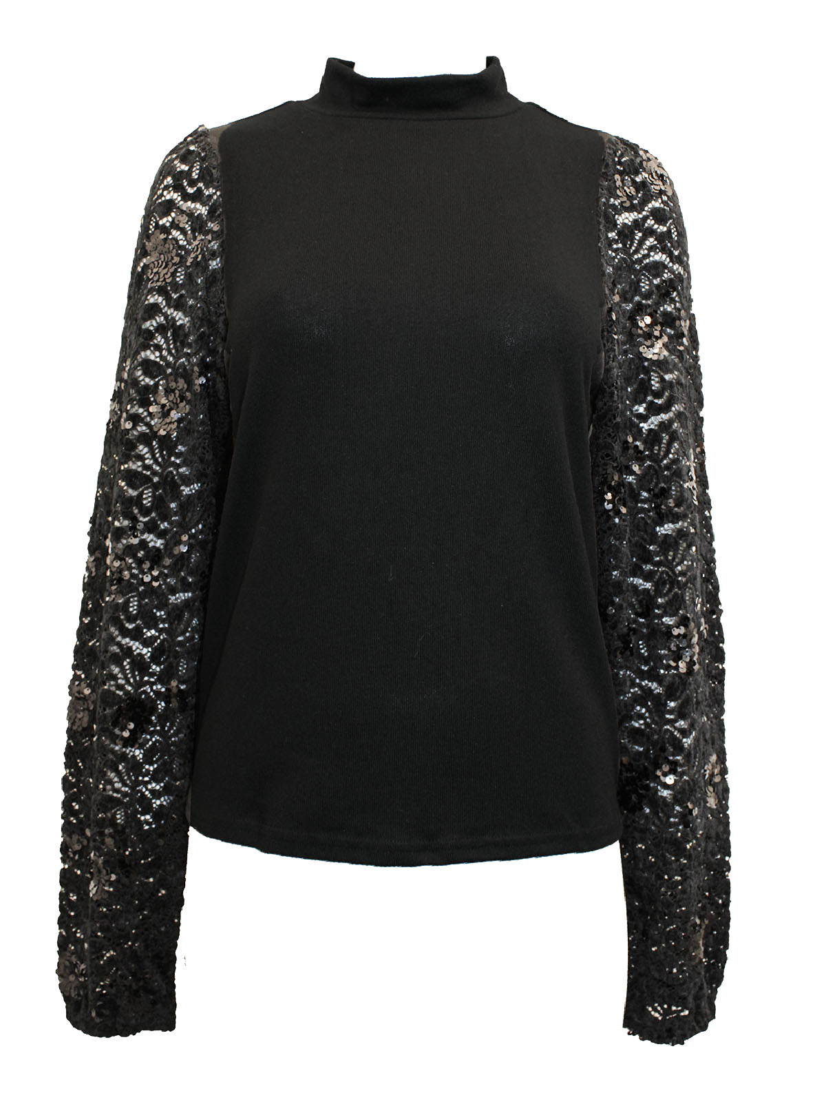Light up the room with this black embellished sleeve top. The sparkly style is made from soft touch, knitted fabric and features sequin embellished sleeves for a glimmering finish. Length 23in.
