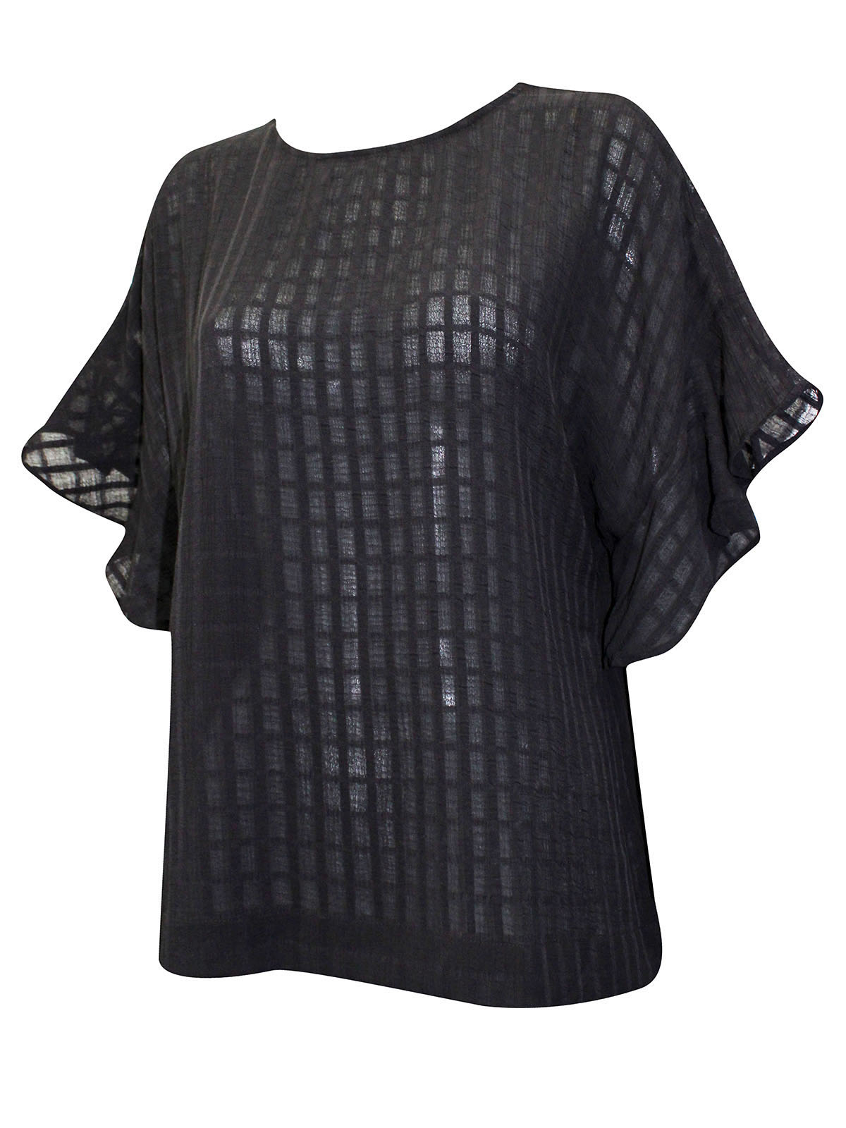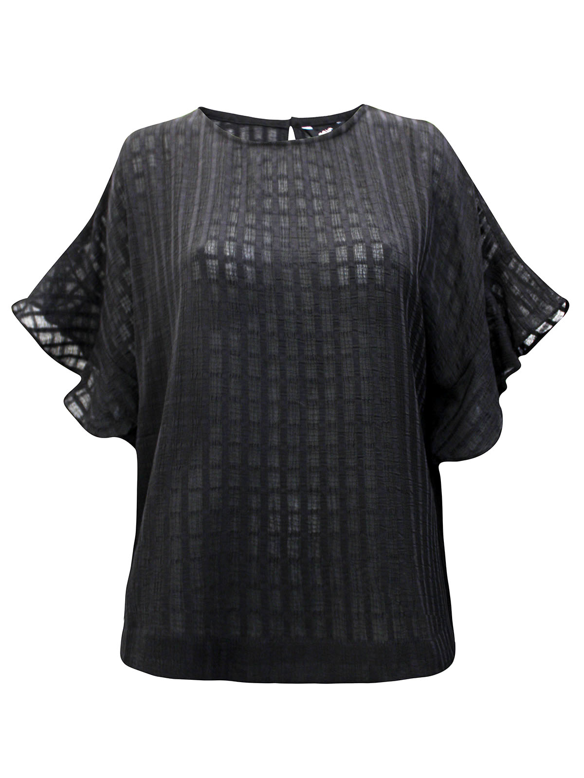 Textured Check Frill Sleeve Top