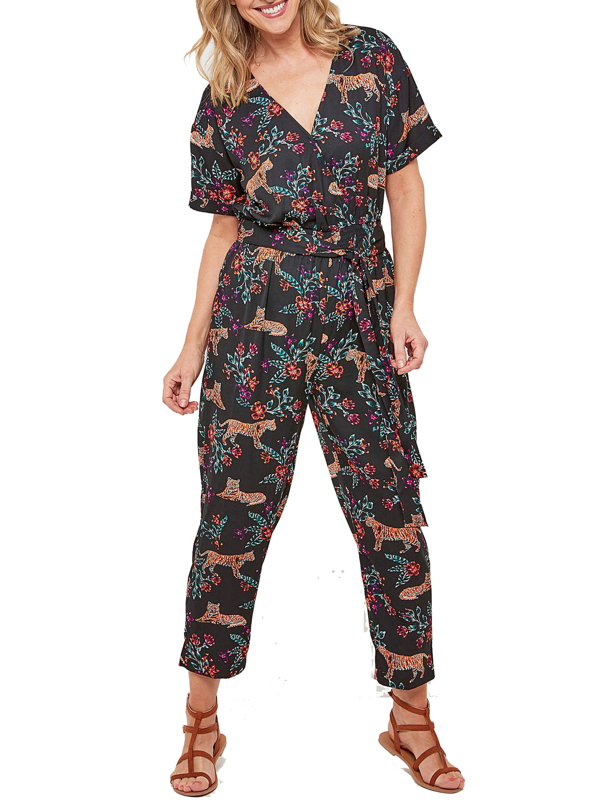 Nothing beats a jumpsuit for those warm summer evenings, so we've teamed this style with our favorite tiger print. Inside leg crop length 24in/61cm.