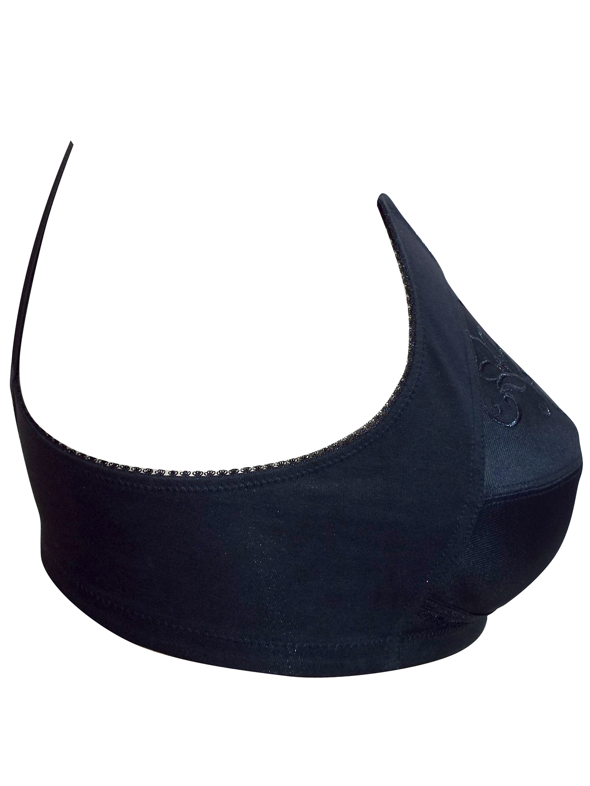 The bra has a beautiful mesh insert fan embellishment for detail, with cotton lining for a comfortable fit. The bra has wider shoulder straps, as well as a triple hook and eye fastening on a wide back strap to add bust support.