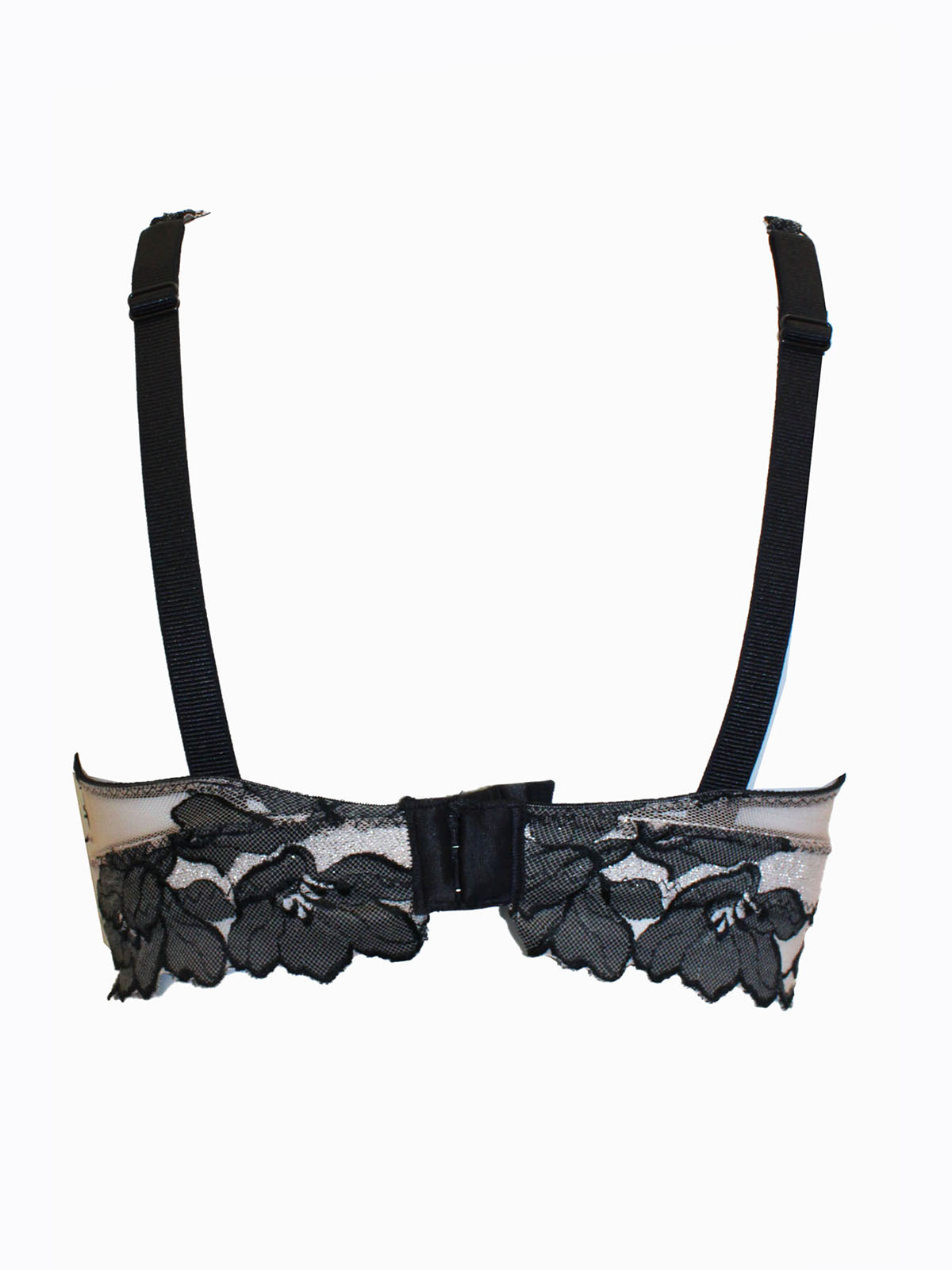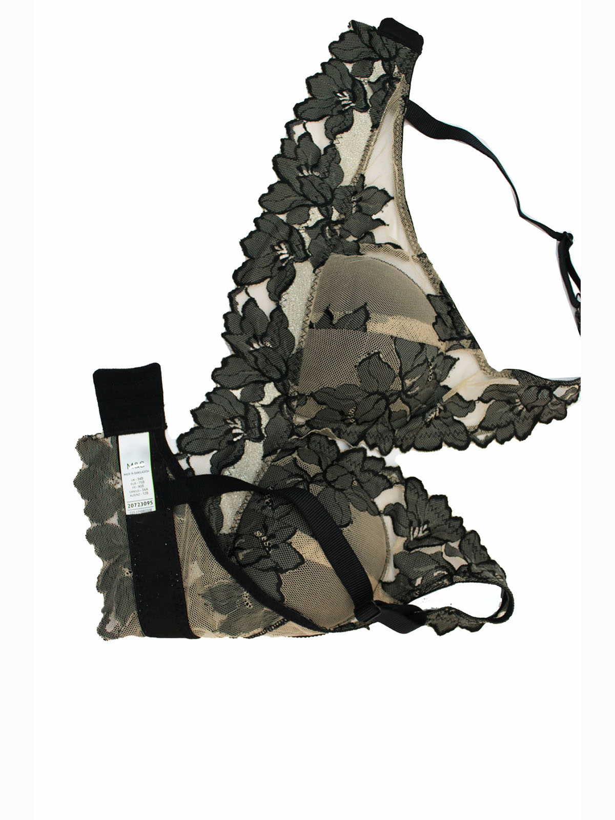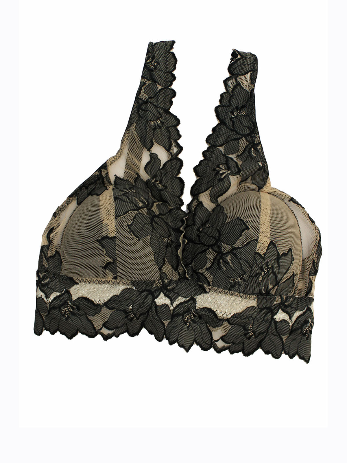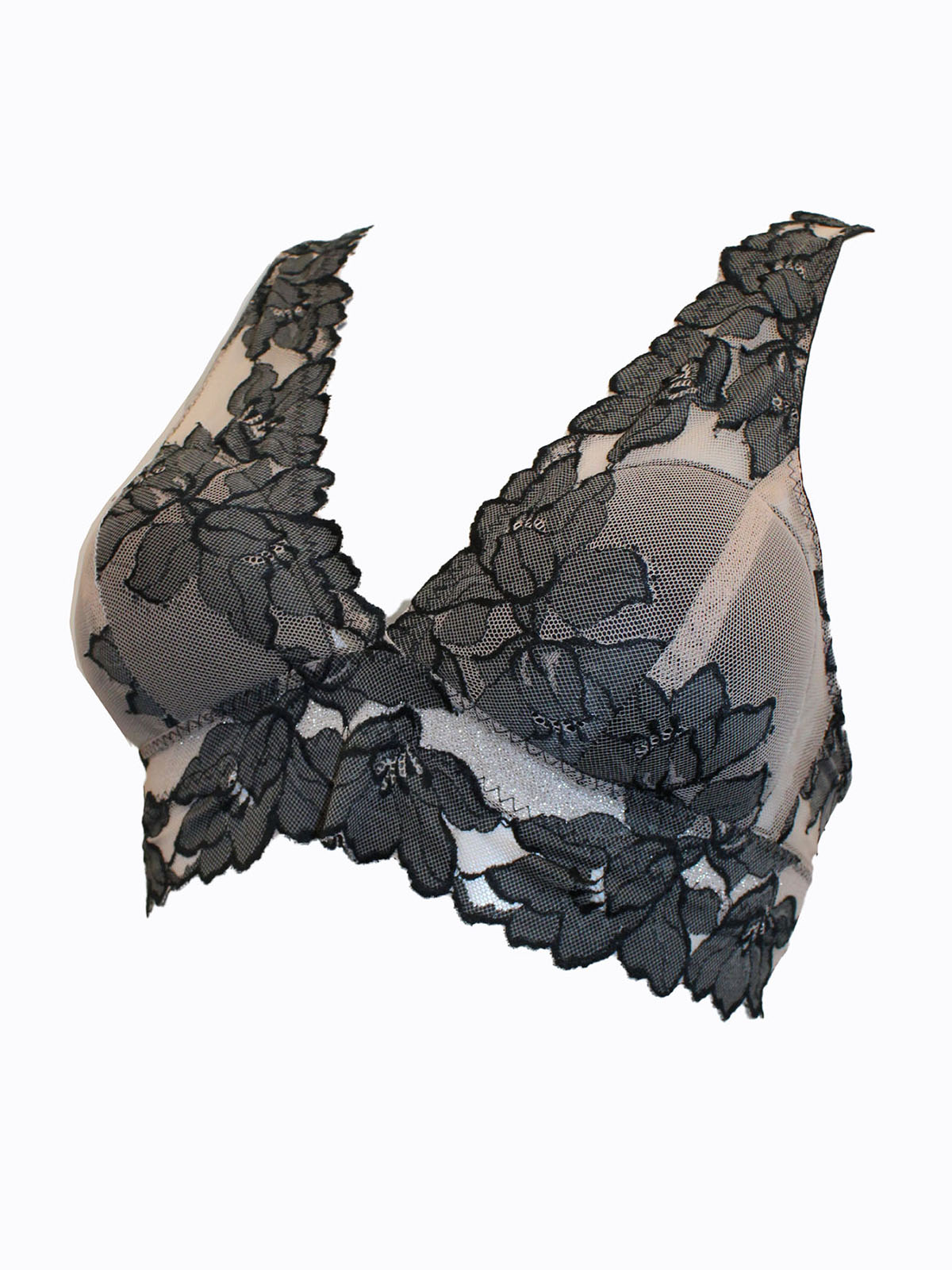 BLACK/BEIGE Embroidered Mesh Non Wired Bralette - Size 34 (B cup)