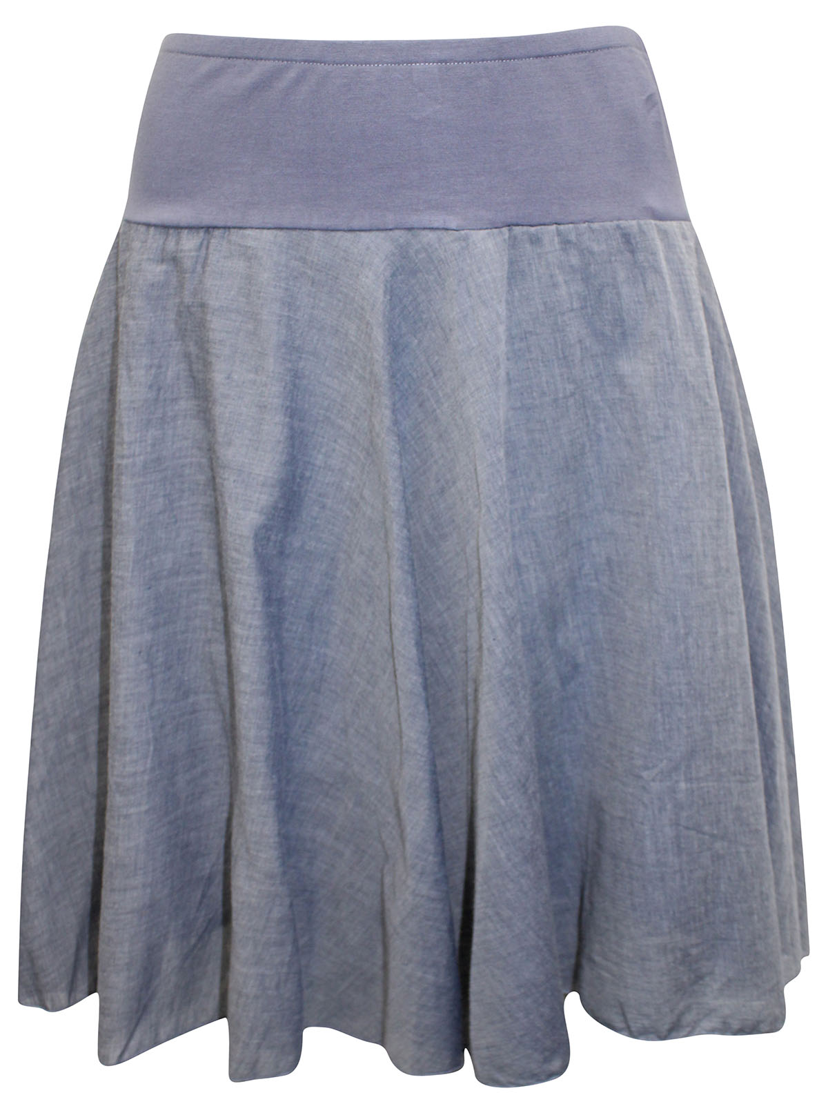 This chambray skirt is a versatile pick that will see you through every season in style. Pull on with an elasticated waistband. Lined. Length 21in.