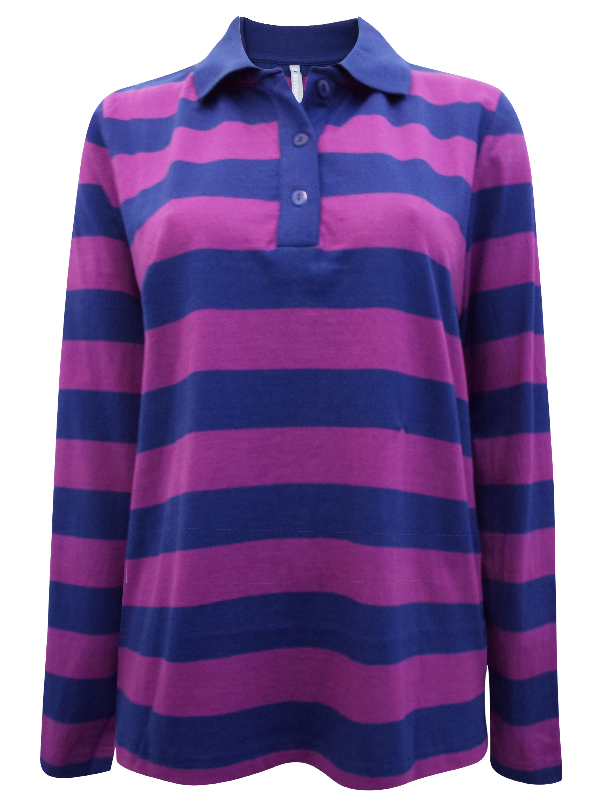 Pure Cotton Striped Long Sleeve Polo Shirt