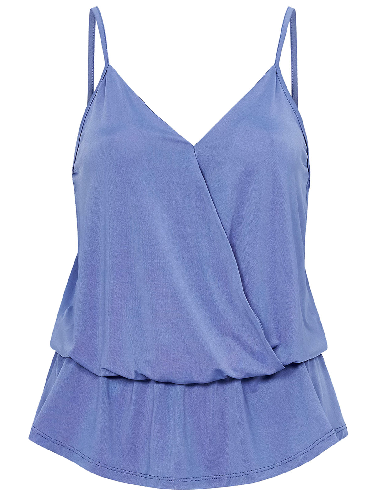 Singlet Georgina in a sewn-on wrap model with a V-neckline at the front and elastic at the waist. Narrow, adjustable shoulder straps and elastic in the back. Produced in soft, glossy tricot. Front piece length (shoulder straps not included) approx. 56cm in size 34/36.