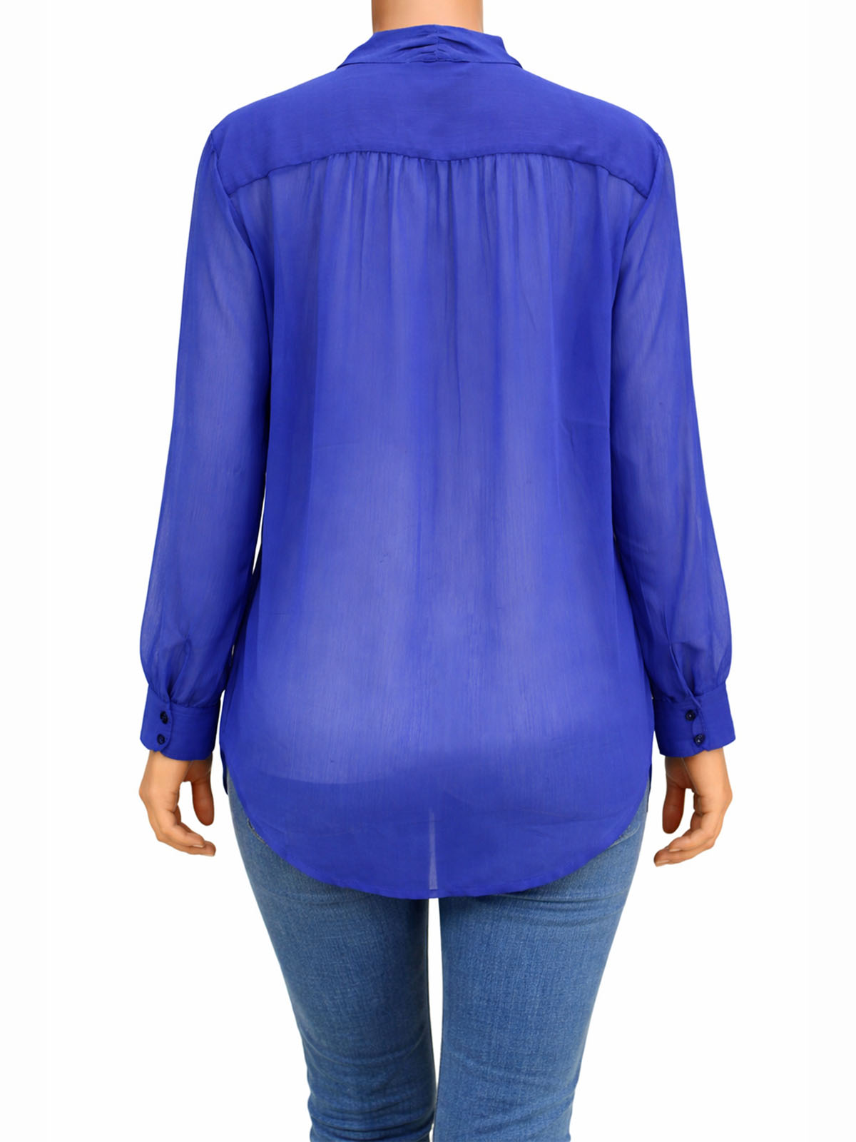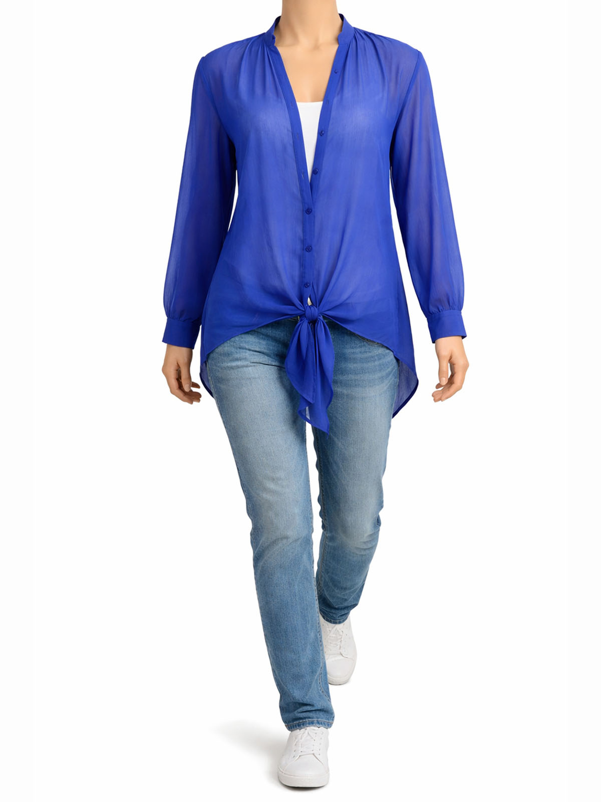 On-trend & effortless, it's a tie! Meet the must-have blouse of the season. V-neckline, long sleeves, button front with self-tie at centre front hem feature. Length 30in.