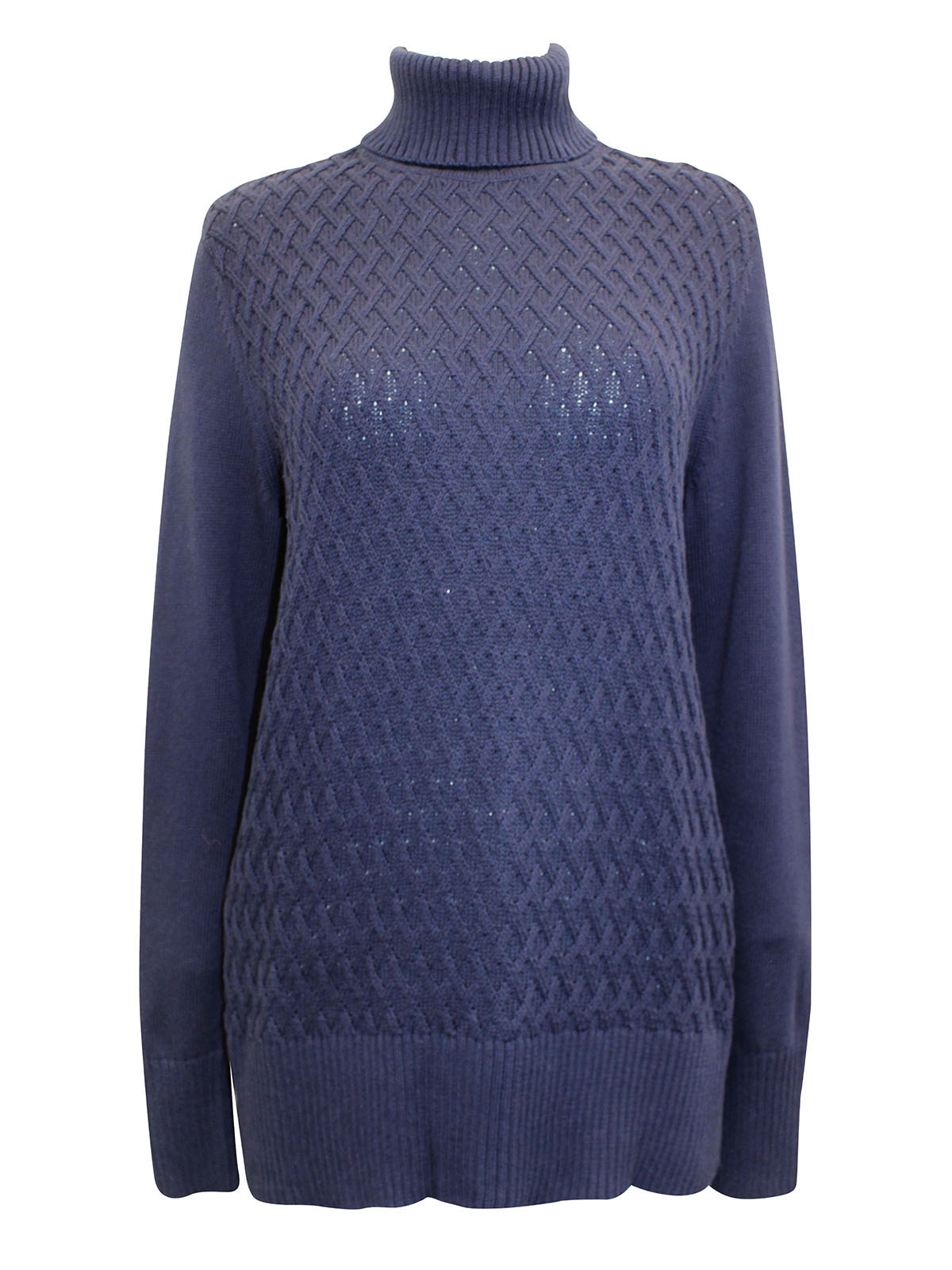BLUE Roll Neck Lattice Knit Jumper - Size 10 to 14 (M to XL)