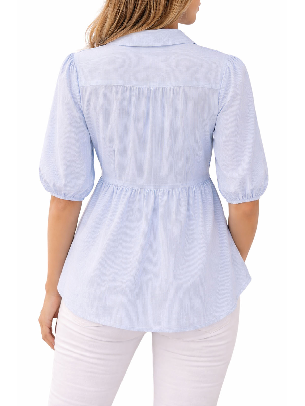 This tiered v-neck shirt offers the perfect daytime look for your wardrobe. Length 28in/71cm.