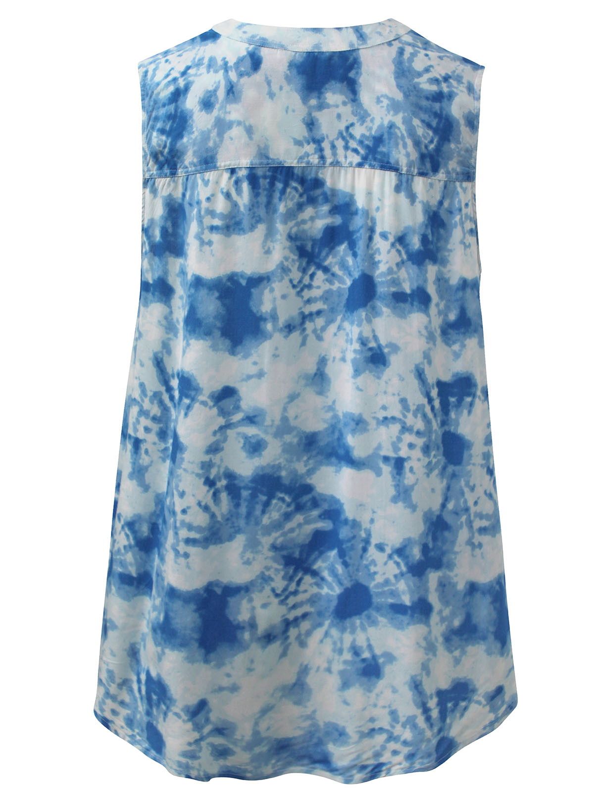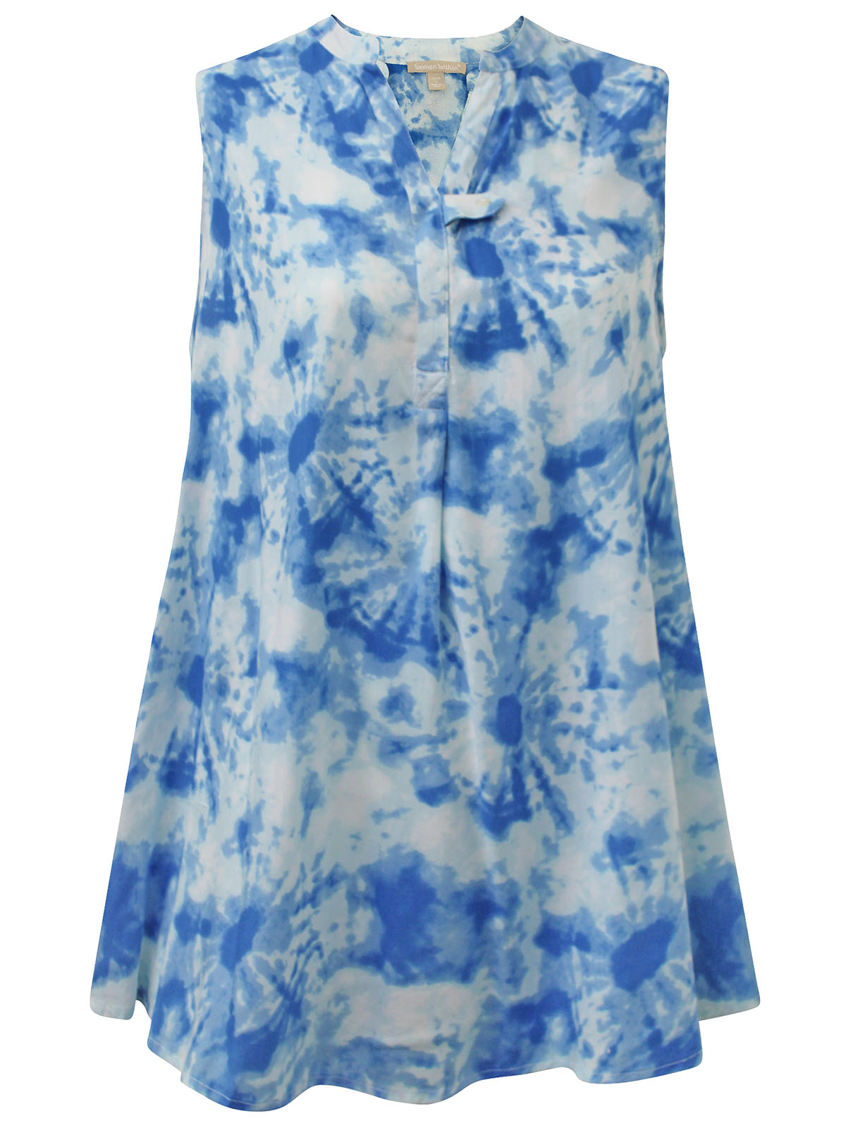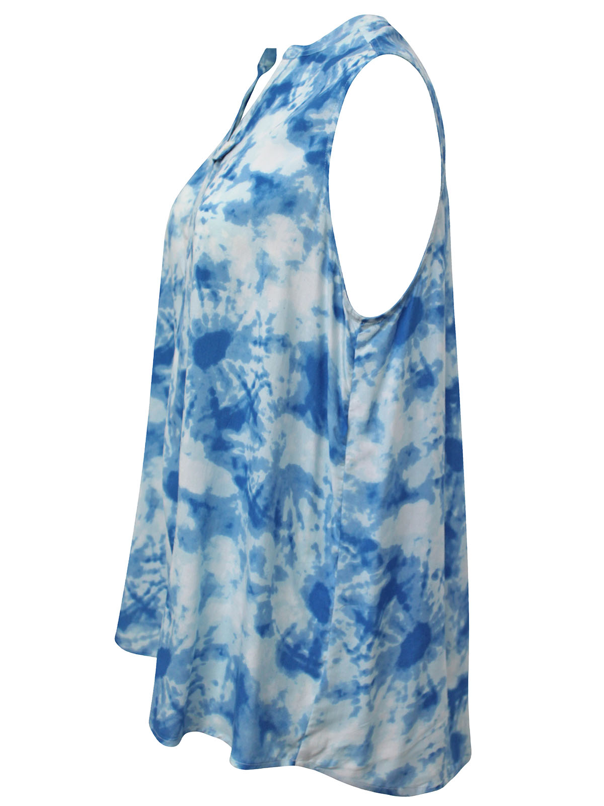 Sleeveless Tab Front Tunic - Vibrant Blue Tie Dye
