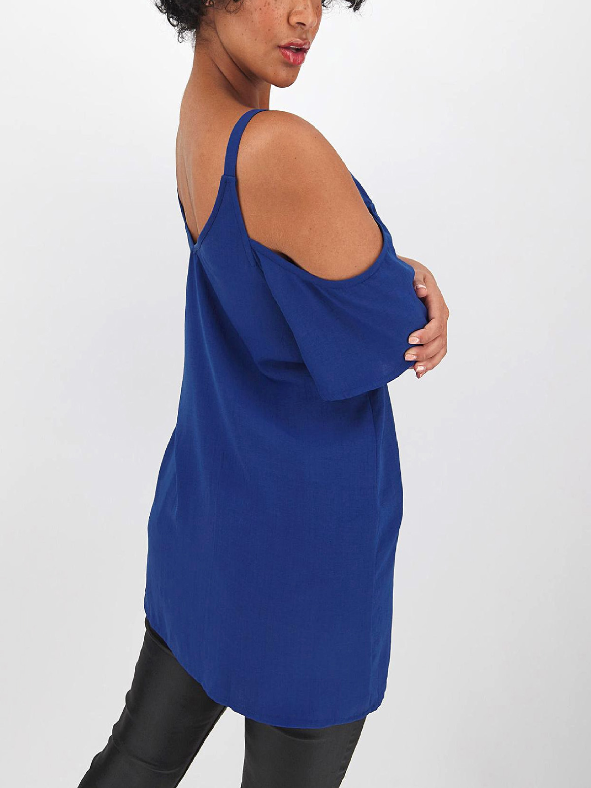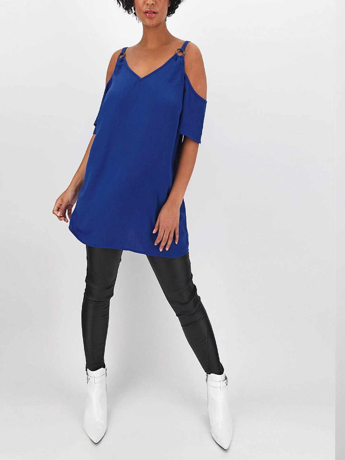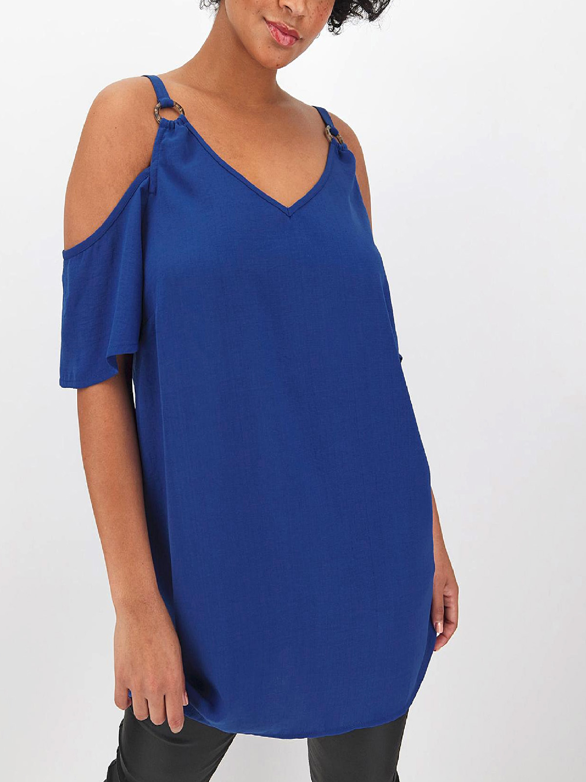Update your cami collection with this ring detail top. With a v-neckline and cold shoulder detail.