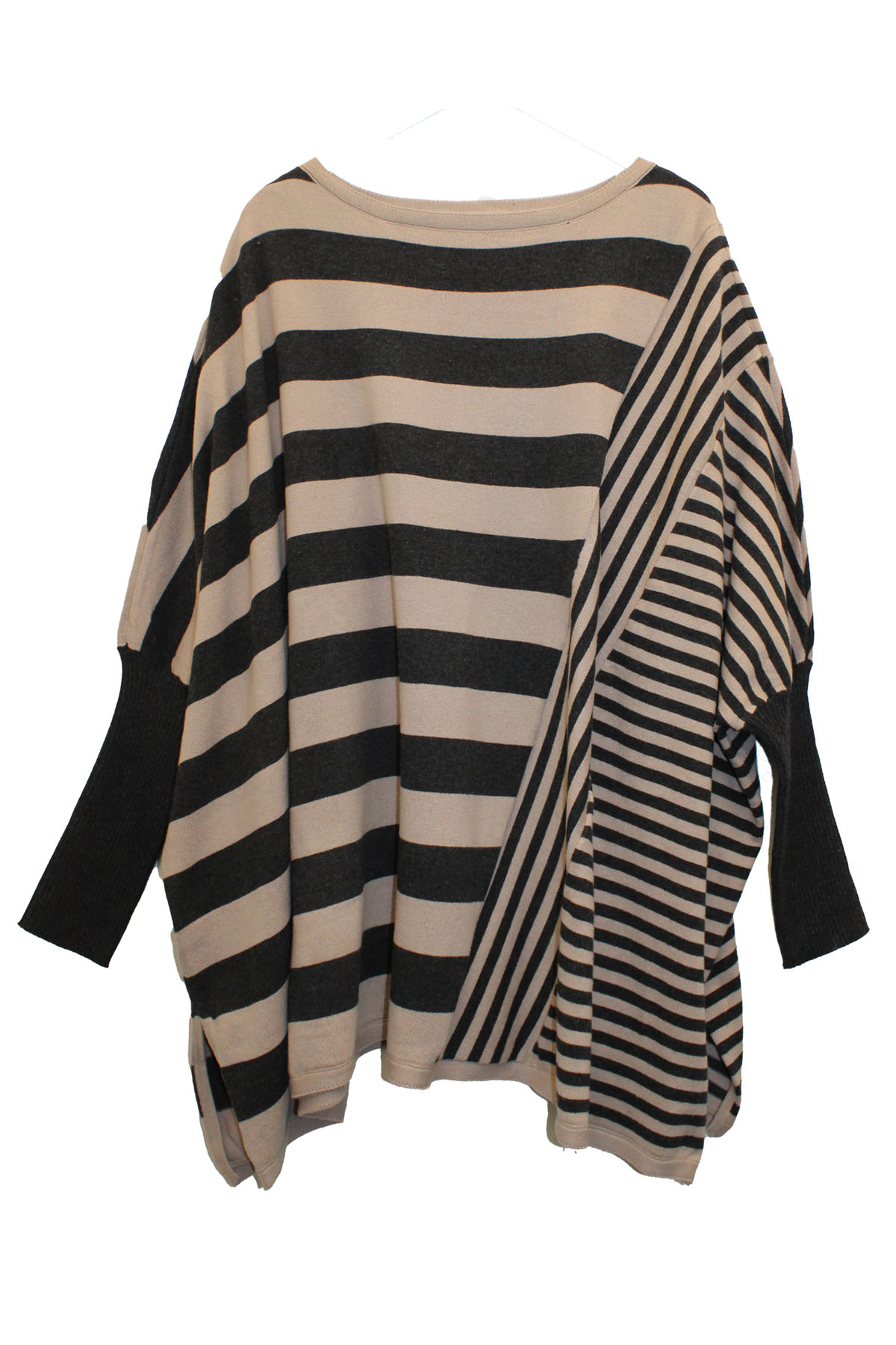 BROWN/CHARCOAL Asymmetric Hem Deep Cuff Striped Jumper - Plus Size 18/20 to 28/30