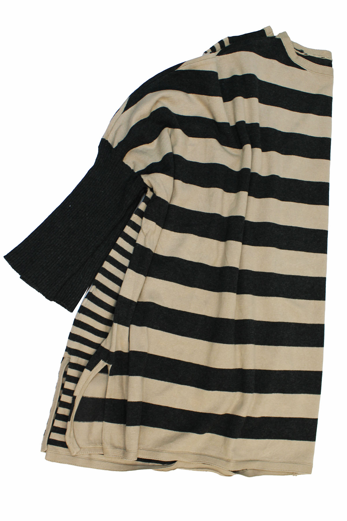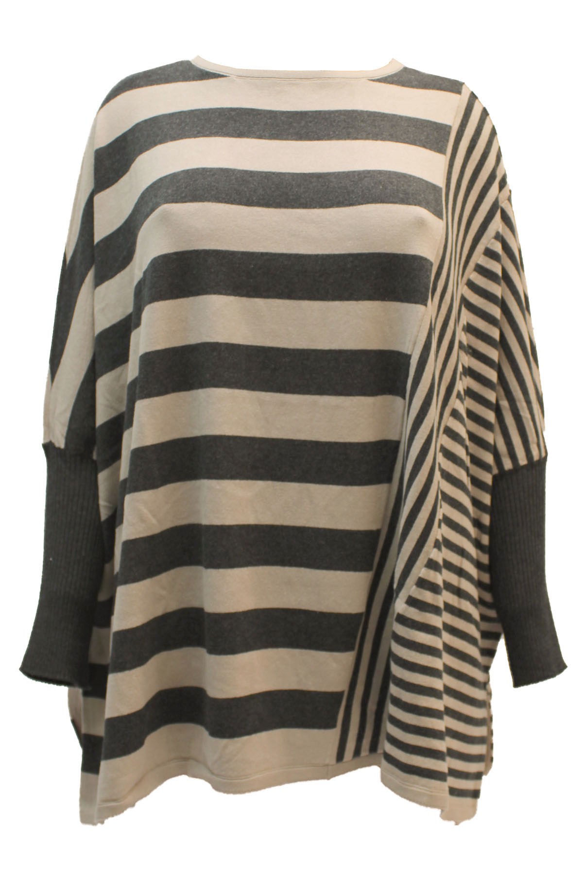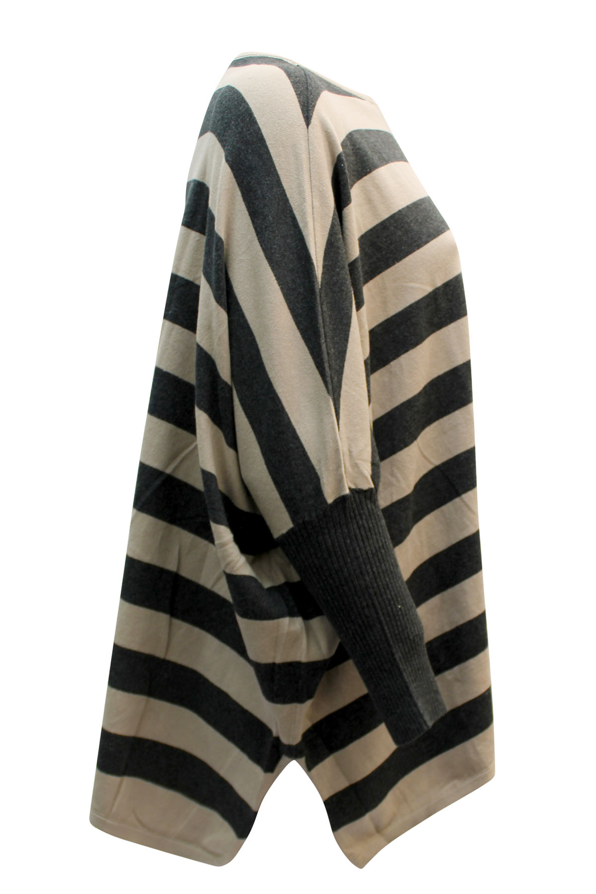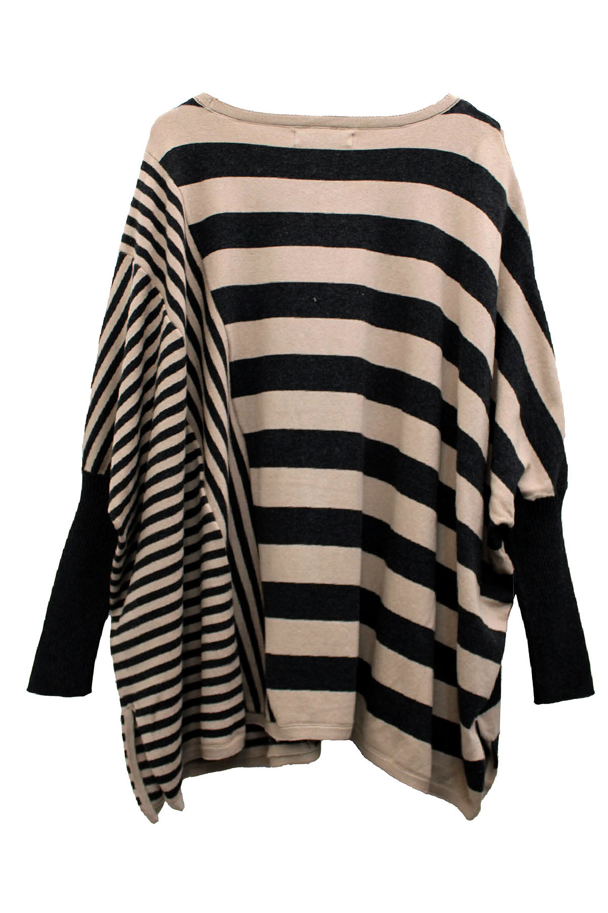 Get on the sleeve trend with this striped jumper! This comfortable jumper is best option for coming cold days. Featuring a scoop neckline, batwing sleeves with deep cuffs and an asymmetric hem. Length 27in.