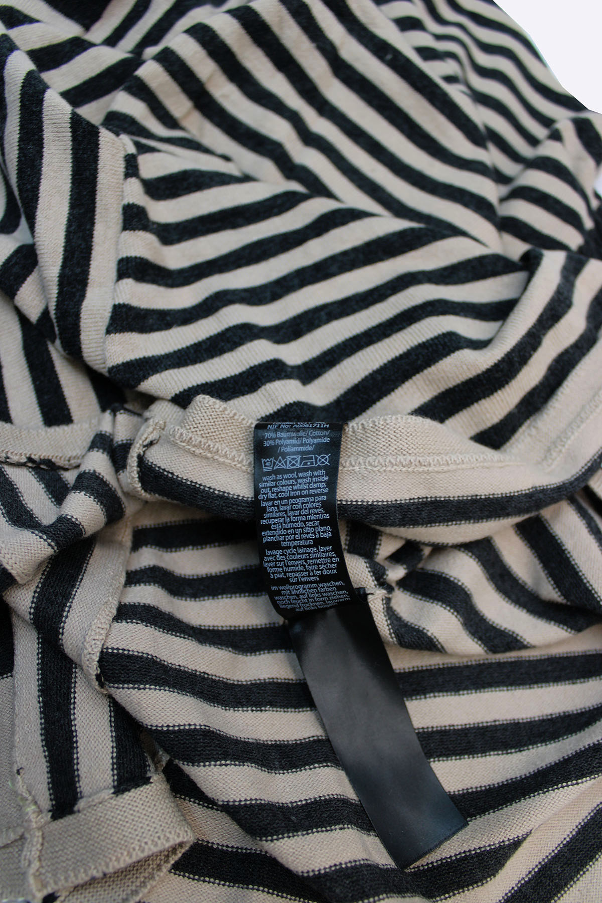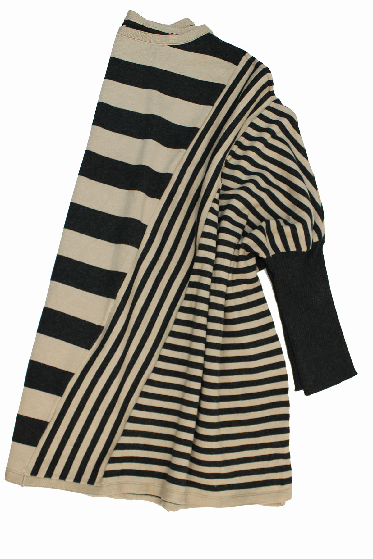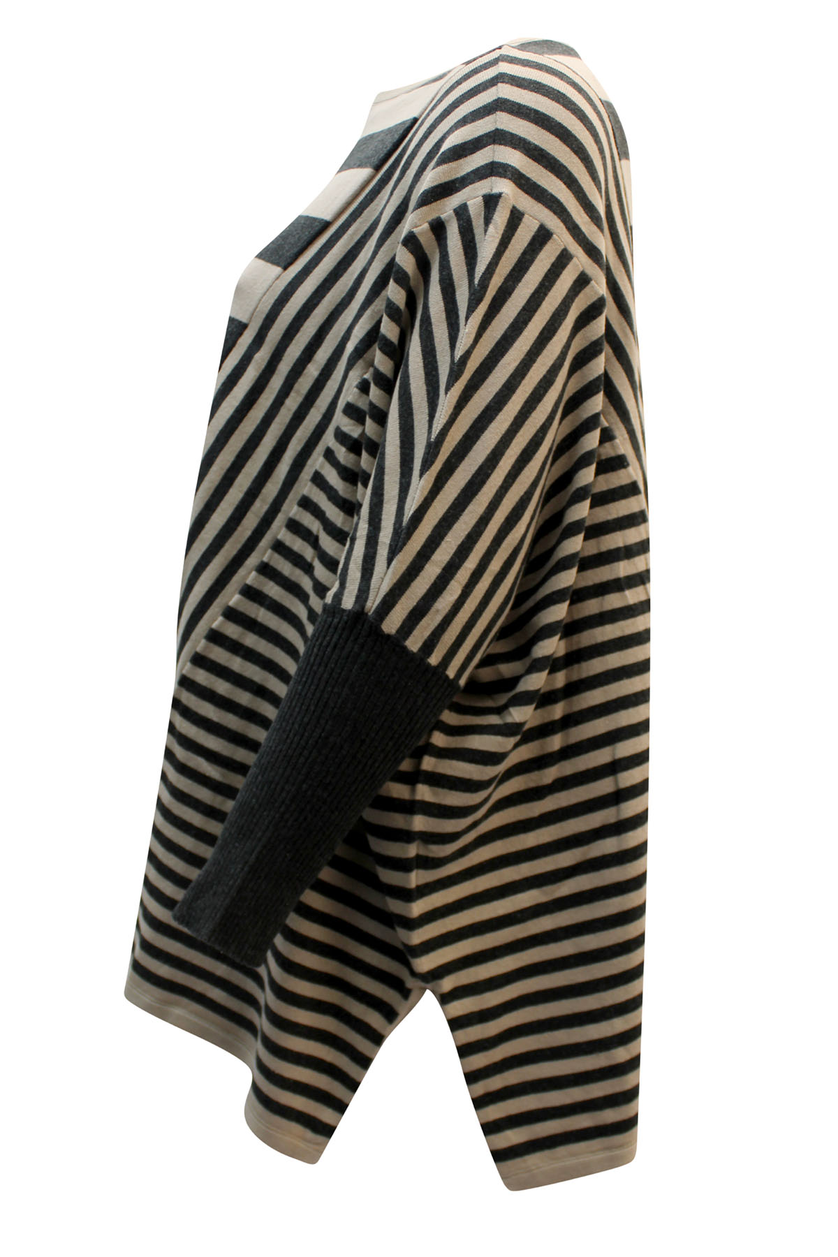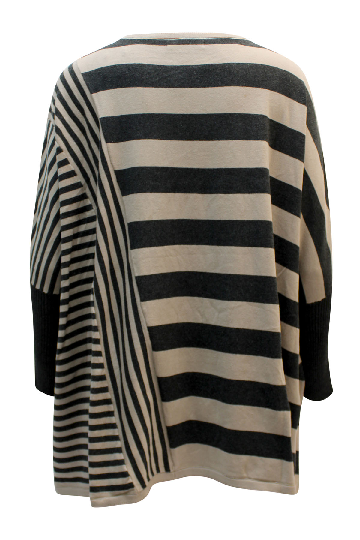 Get on the sleeve trend with this striped jumper! This comfortable jumper is best option for coming cold days. Featuring a scoop neckline, batwing sleeves with deep cuffs and an asymmetric hem. Length 27in.
