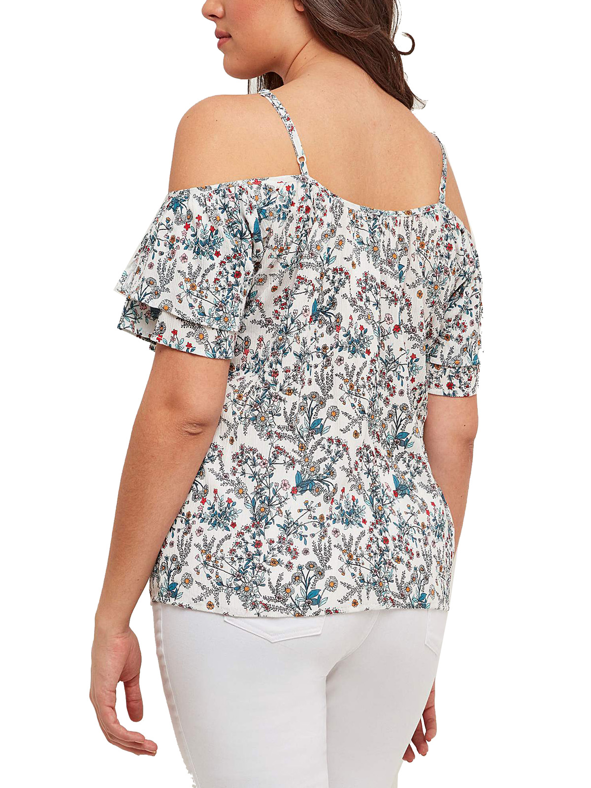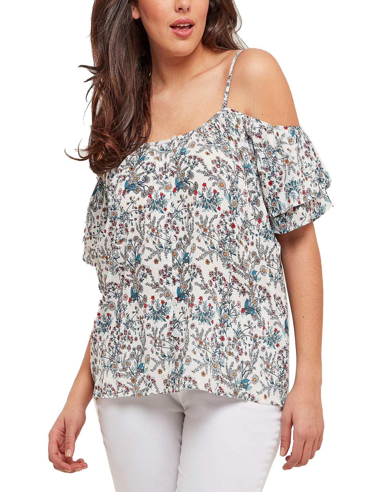 This cute cold shoulder top from Joe Browns is adorned in the most beautiful floral print and features ruffle detailing to the sleeves for a feminine and fabulous finishing touch. The soft, floaty fabric is perfect for keeping cool in the scorching summer sun, meanwhile the button-through front adds a classic look. Length 26in/66cm.