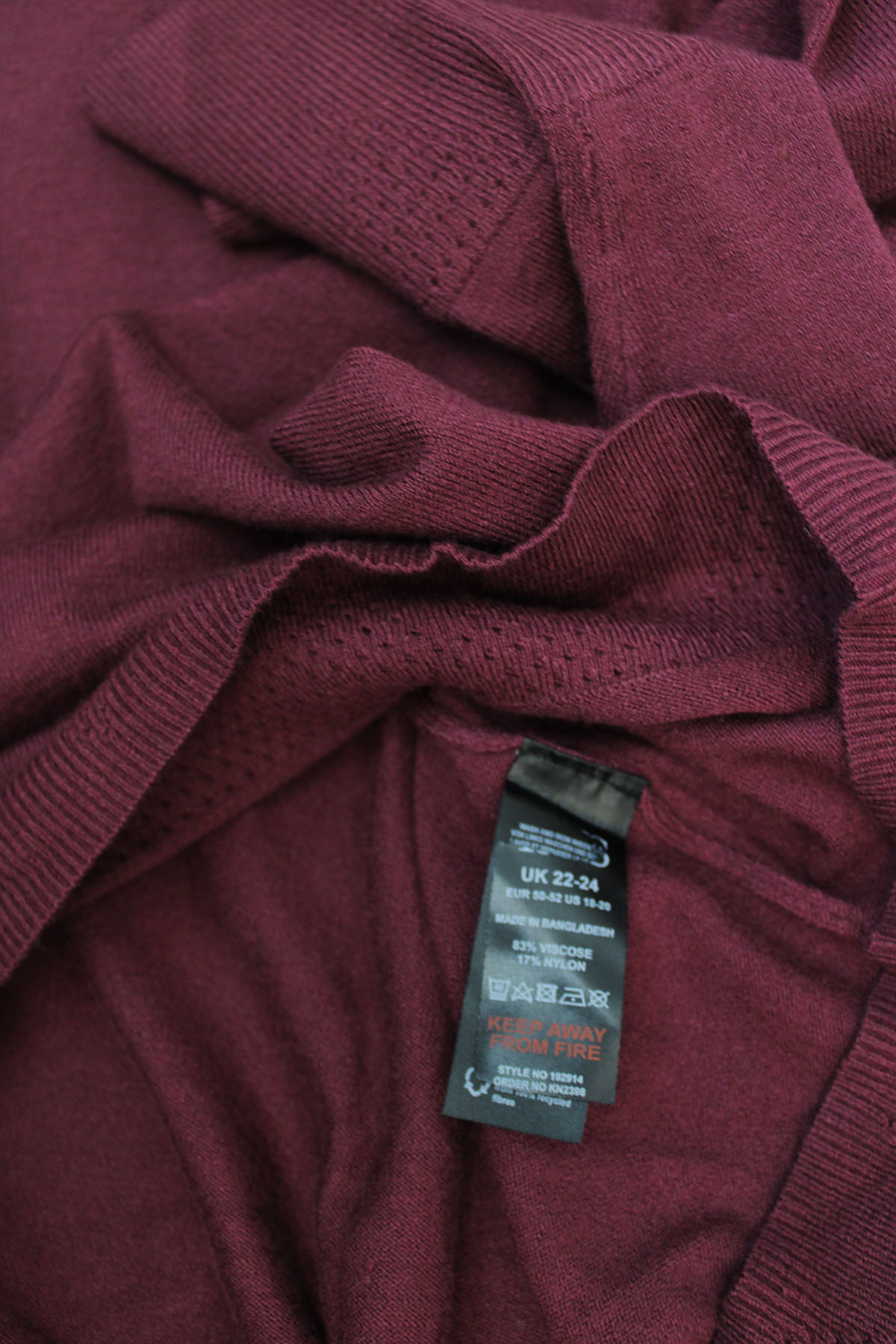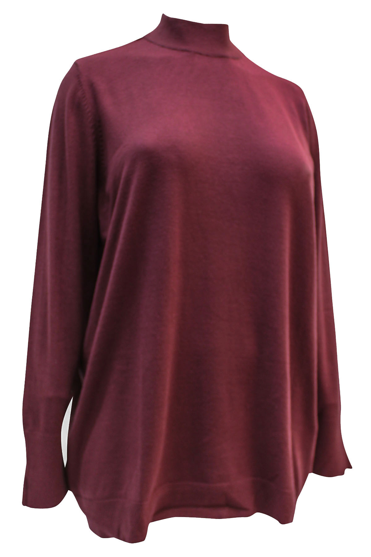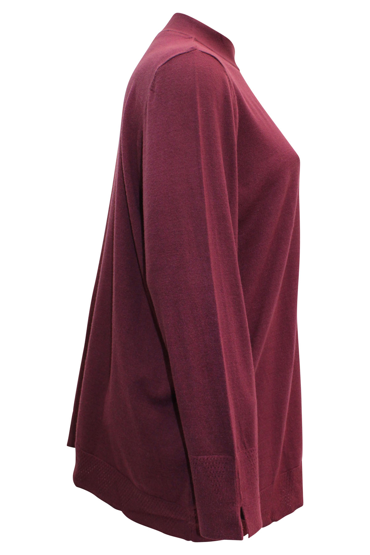 BURGUNDY Curve Funnel Neck Pointelle Trim Jumper - Plus Size 14/16 to 30/32