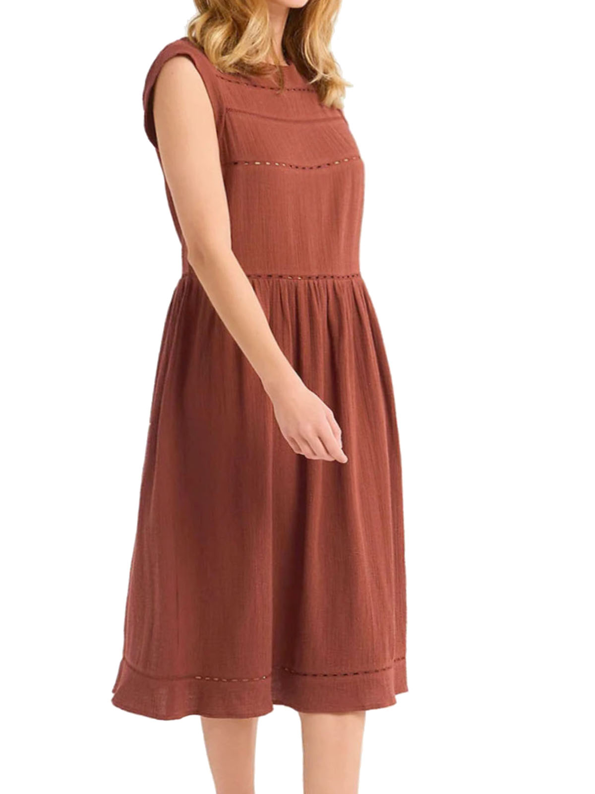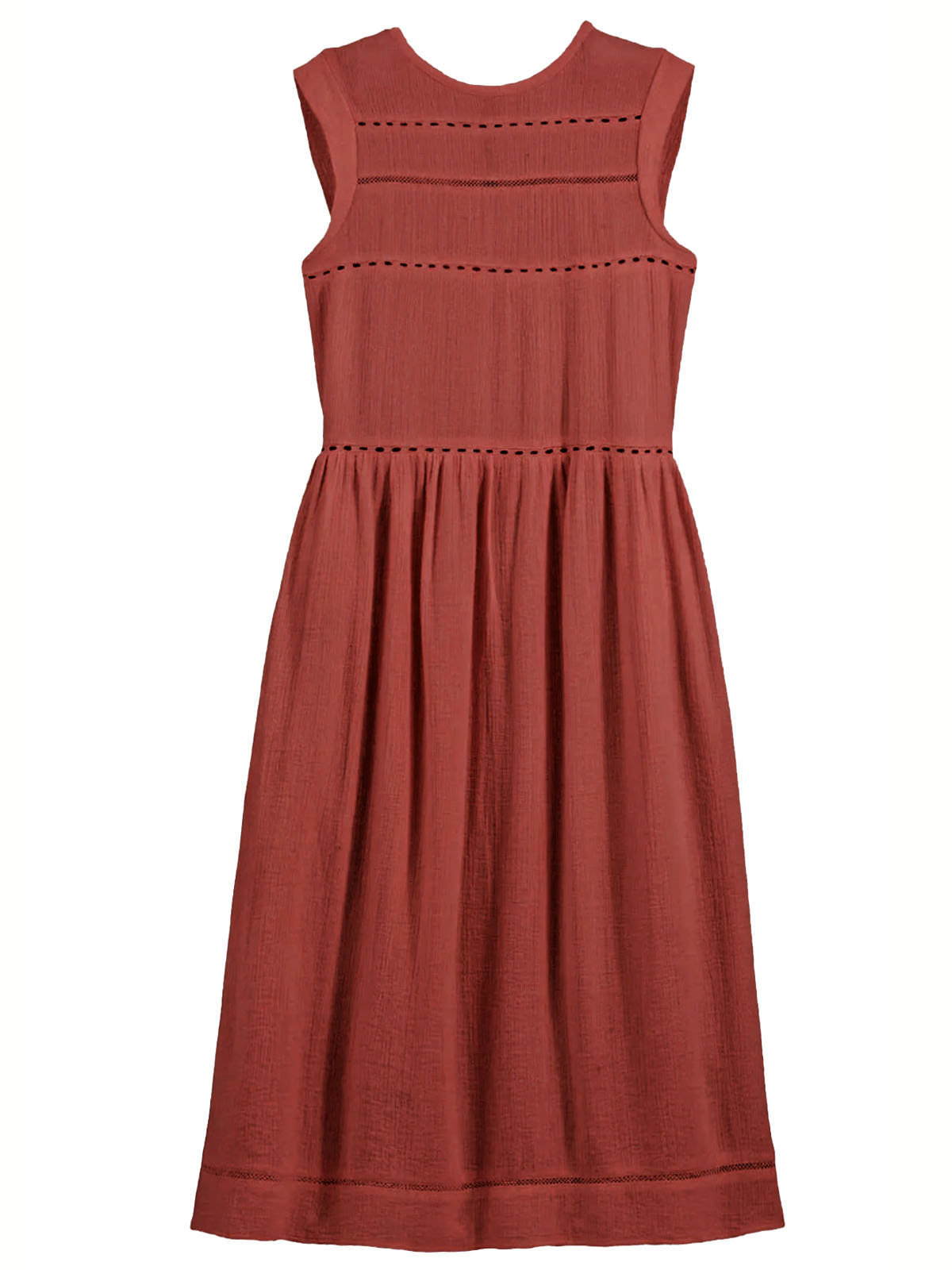 Sleeveless Ladder Trim Midi Dress, Burnt Sienna