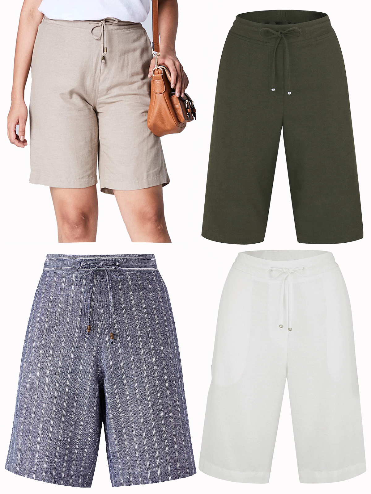A mixed pack of linen blend shorts with a variety of styles and colors.