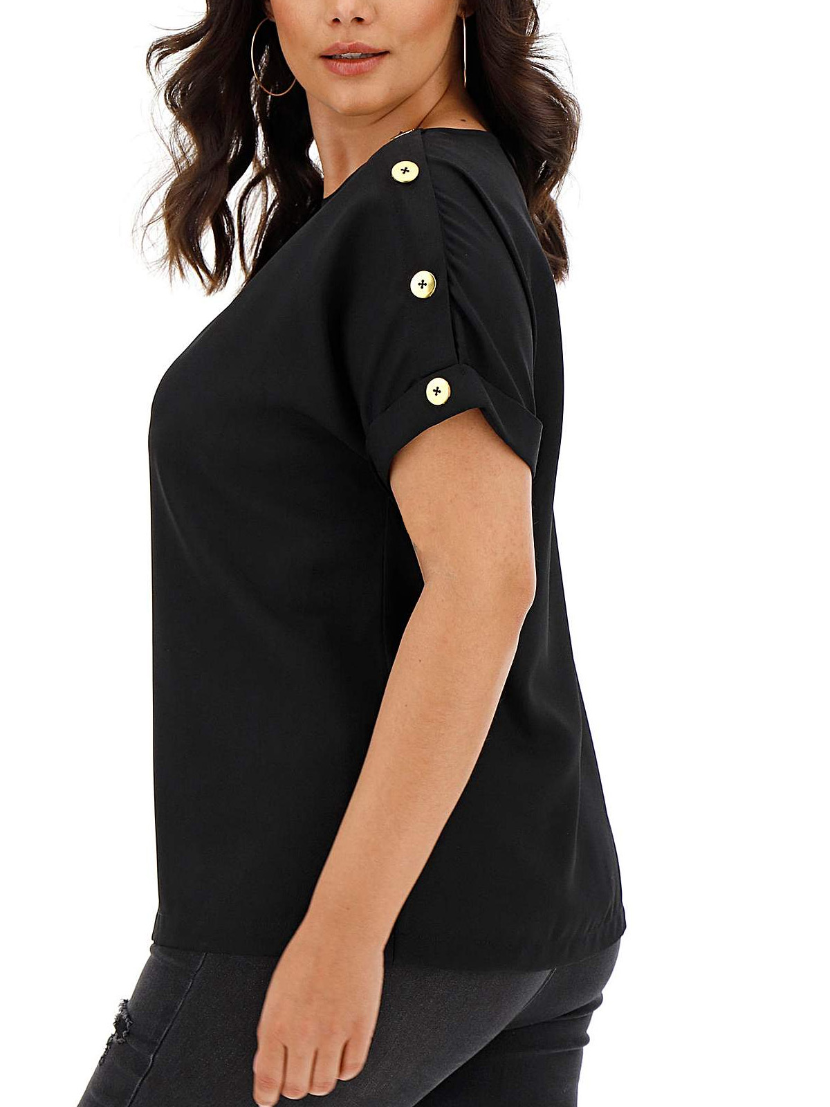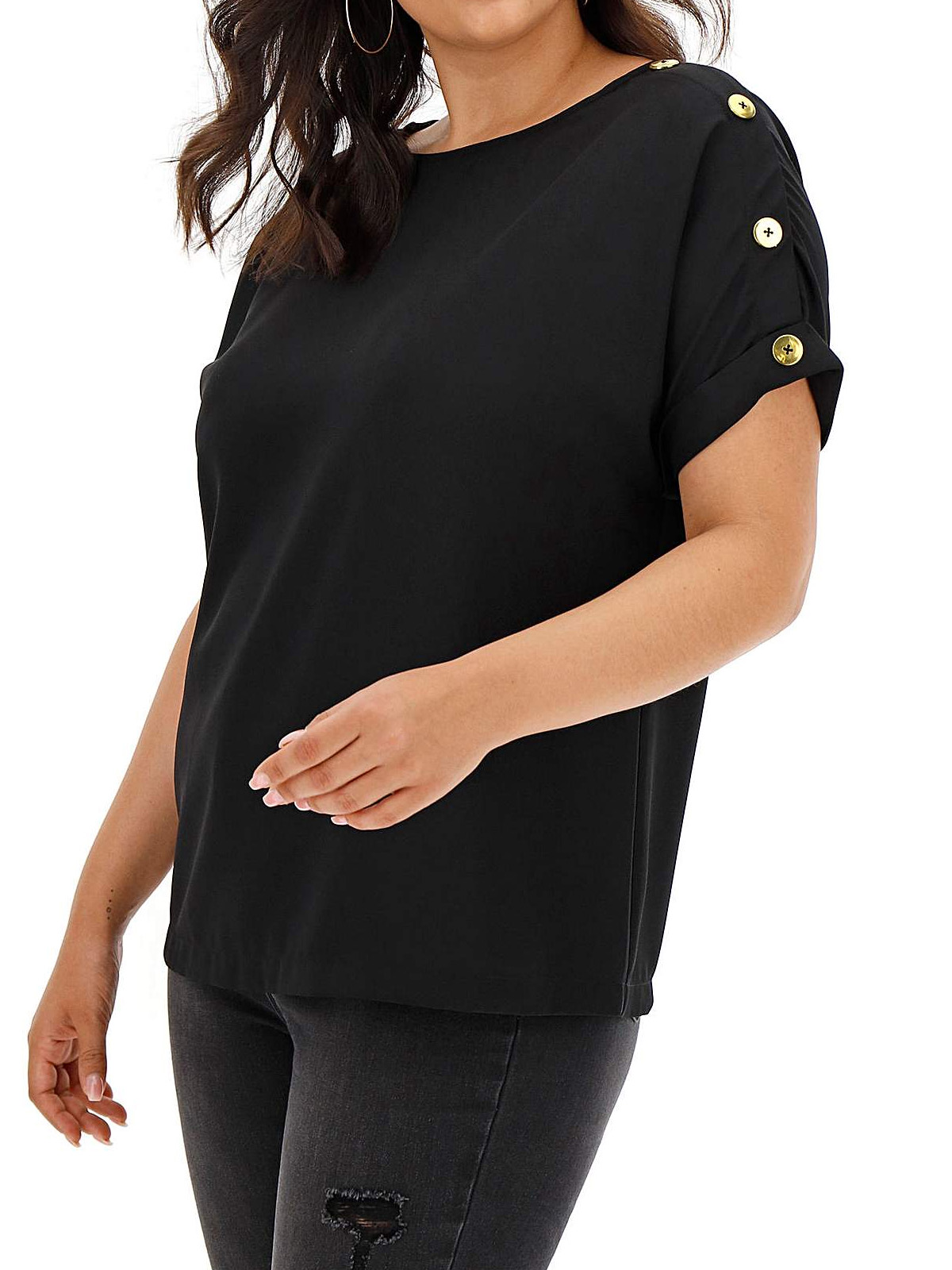 Capsule BLACK Button Detail Boxy Top - Size 10 to 16