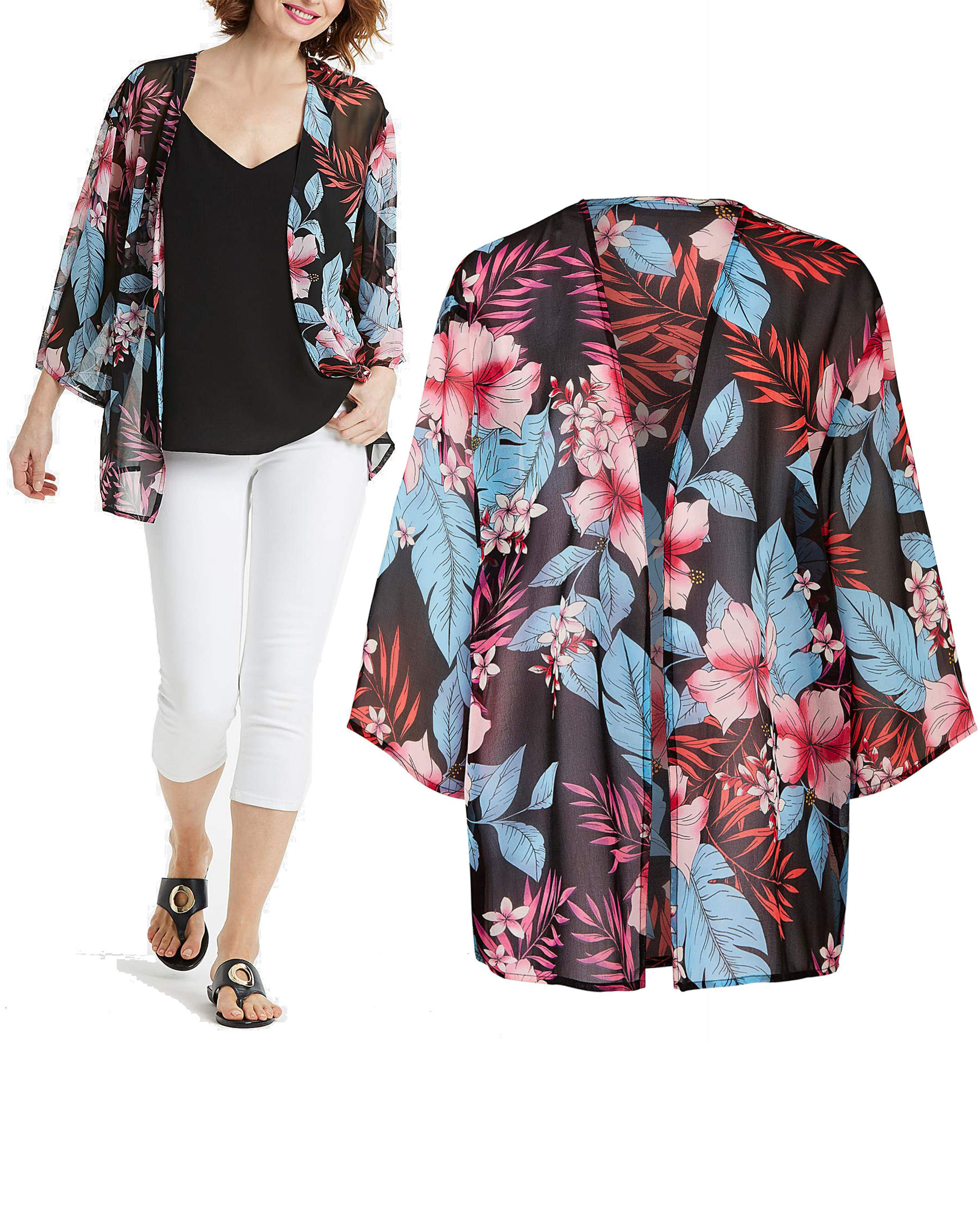 Start the new season in style in this fresh floral print kimono. A chic cover up to keep you cool in the summer heat. Length 30in/76cm.