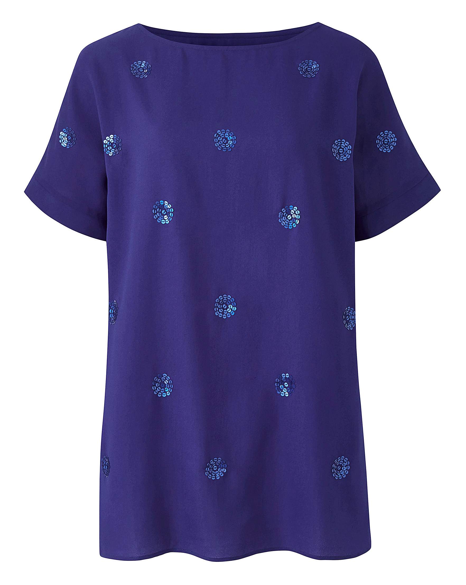 For easy, everyday style, look to this drop sleeve shell top for style inspo. Featuring all-over embellished detailing in a longline style with drop sleeve detailing. Length 26in/66cm.