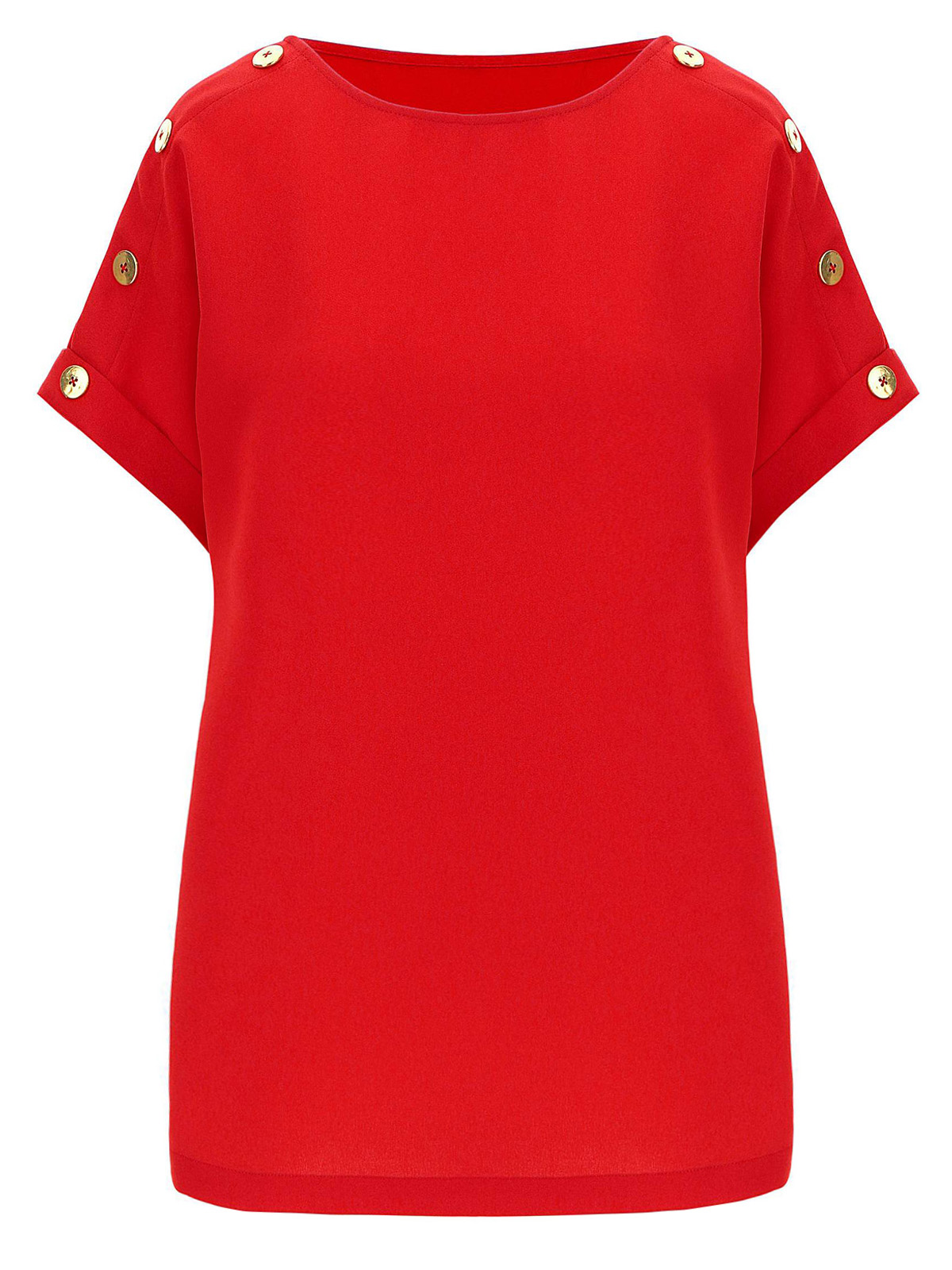 For easy, everyday style, look to this drop-sleeve shell top for style inspo. Featuring a plain design in a longline style with drop-sleeve detailing and button detailing to the shoulder. Length 26in/66cm.