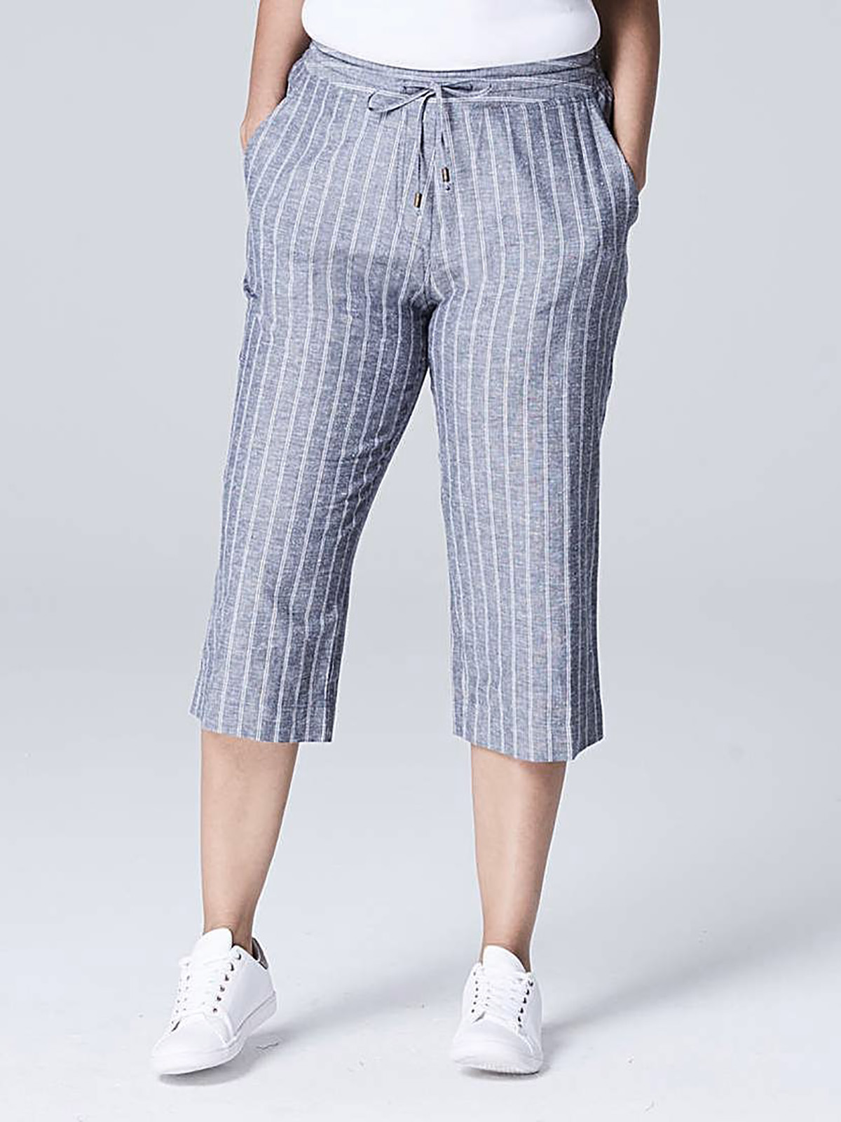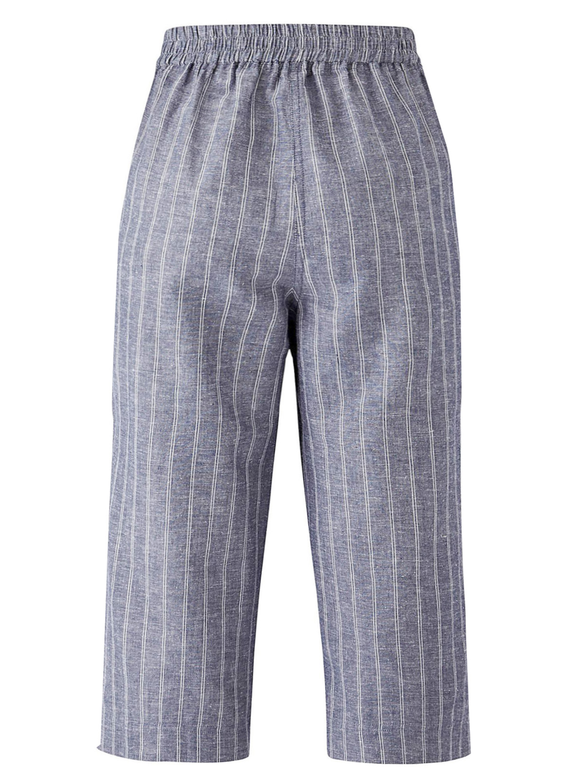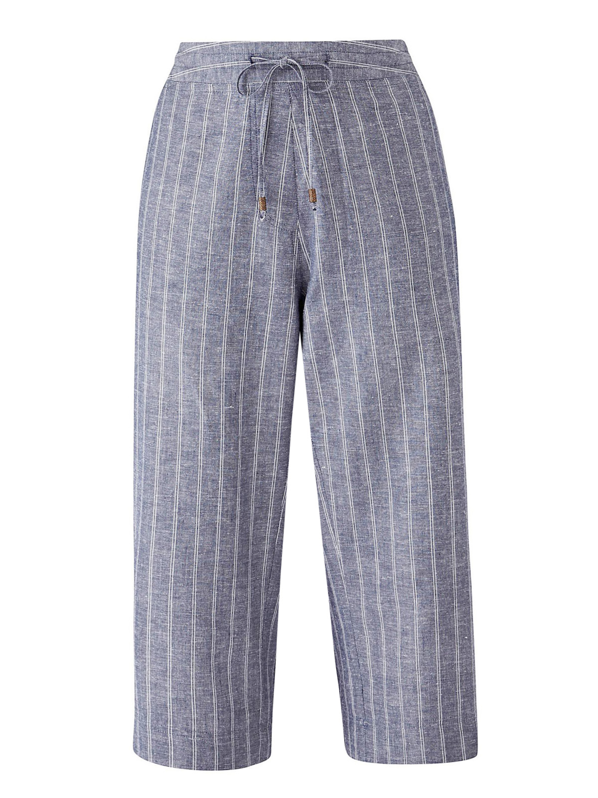 Keep your wardrobe stylish with these soft linen blend trousers. They are lightweight and breathable, making them great for this season. These comfortable, easy to wear trousers are a great classic look. Full back elasticated waist, tie front and two pockets. Inside leg 19in.