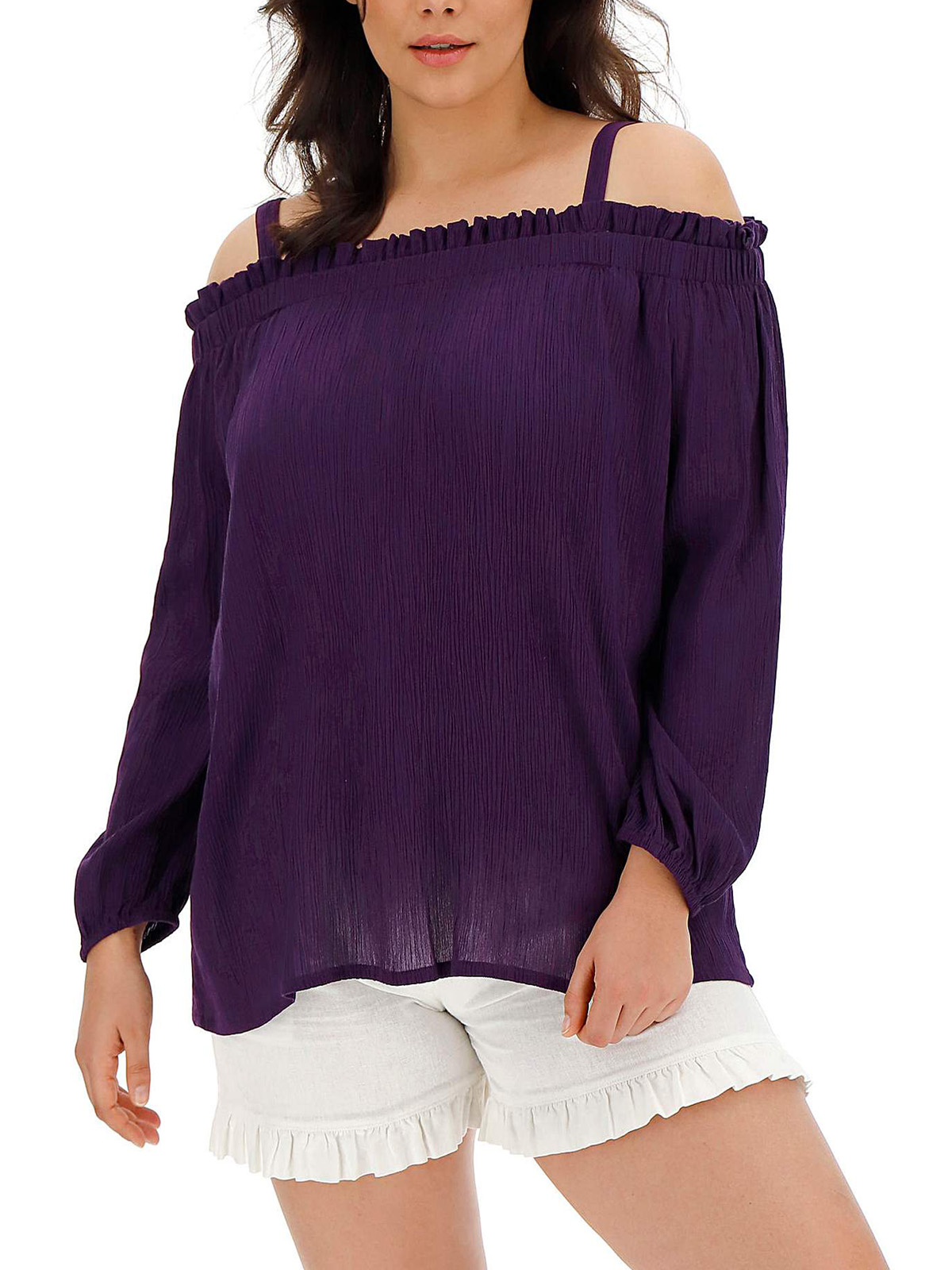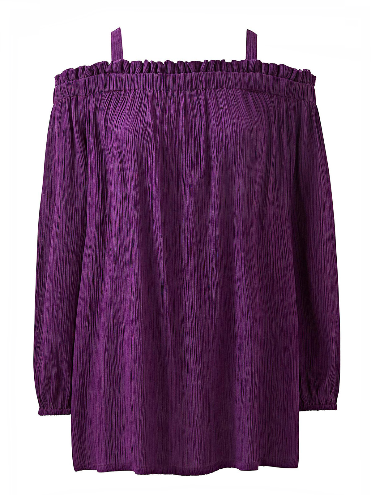 Look great in this crinkle cold-shoulder bardot. The crinkle bardot is fashioned from a soft viscose crinkle fabric, perfect for those warmer summer months. The crinkle bardot features long sleeves and elasticated detail to the shoulders. Length 27in/68.5cm.