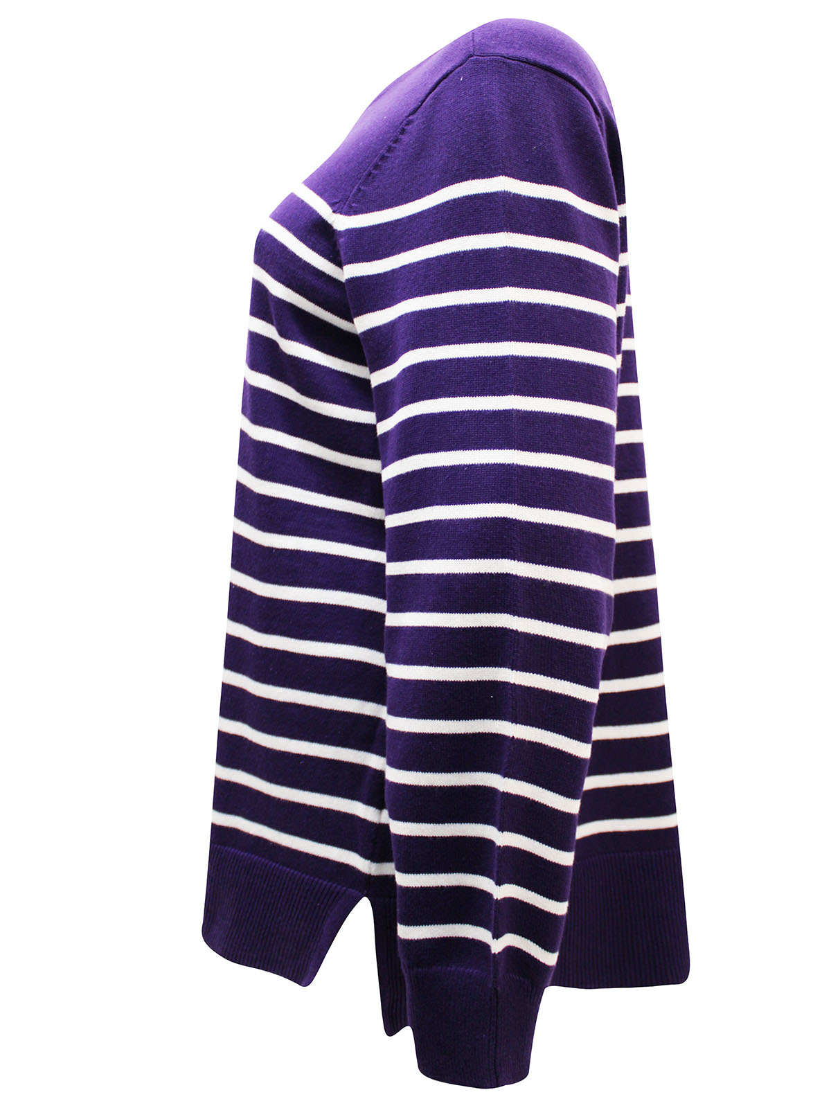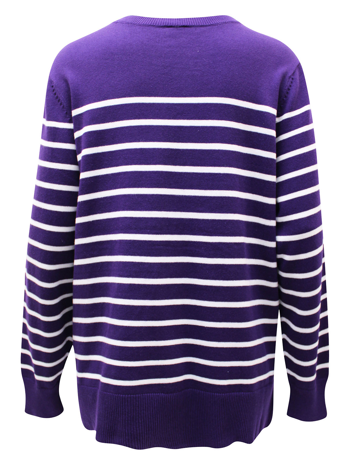 Enter the new season in style with this comfy knitted jumper. Featuring a rounded neckline, long sleeves and striped design, this jumper is a must-have for the colder seasons! Length 29in.