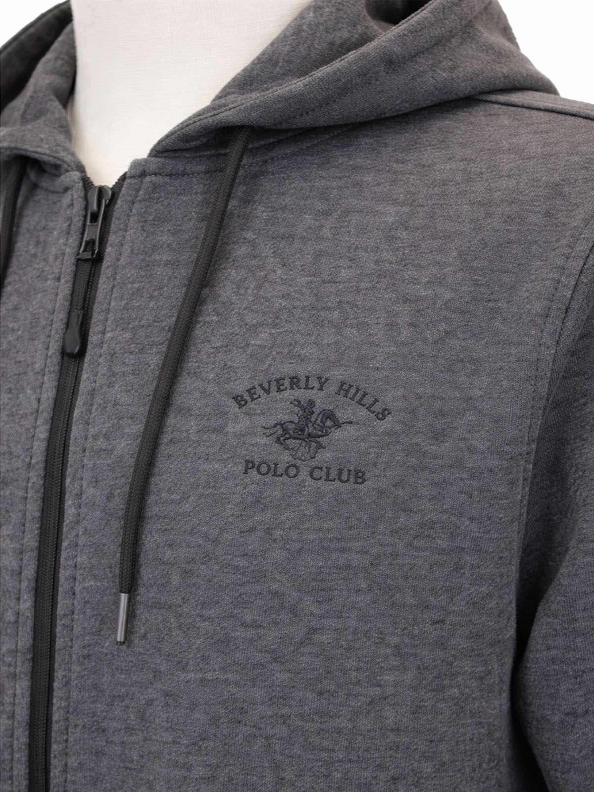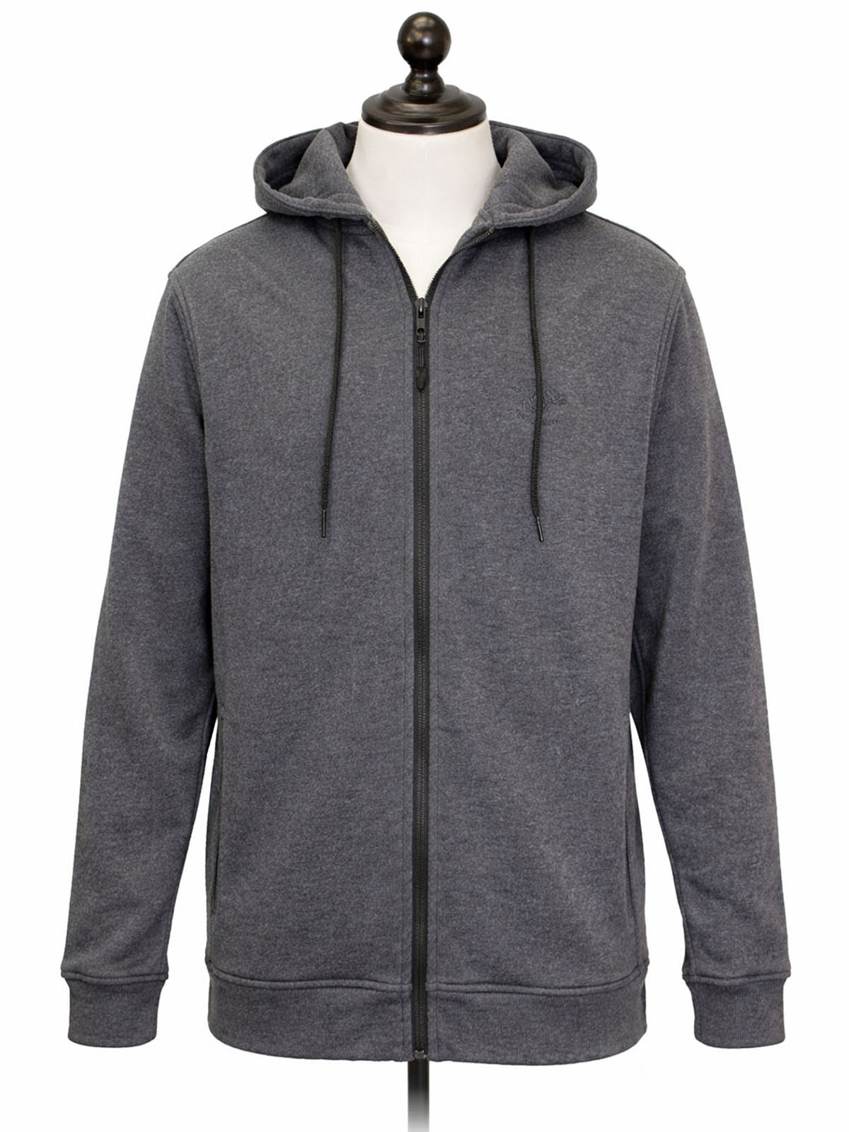 Stay warm whatever the season in this hoodie. In charcoal featuring front pockets and a drawstring hood, this long sleeved zip-up hoodie is a staple item for your everyday wardrobe. Length 30in.