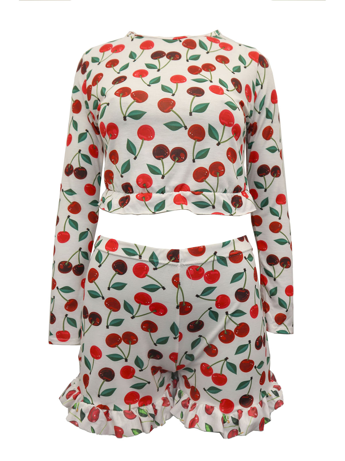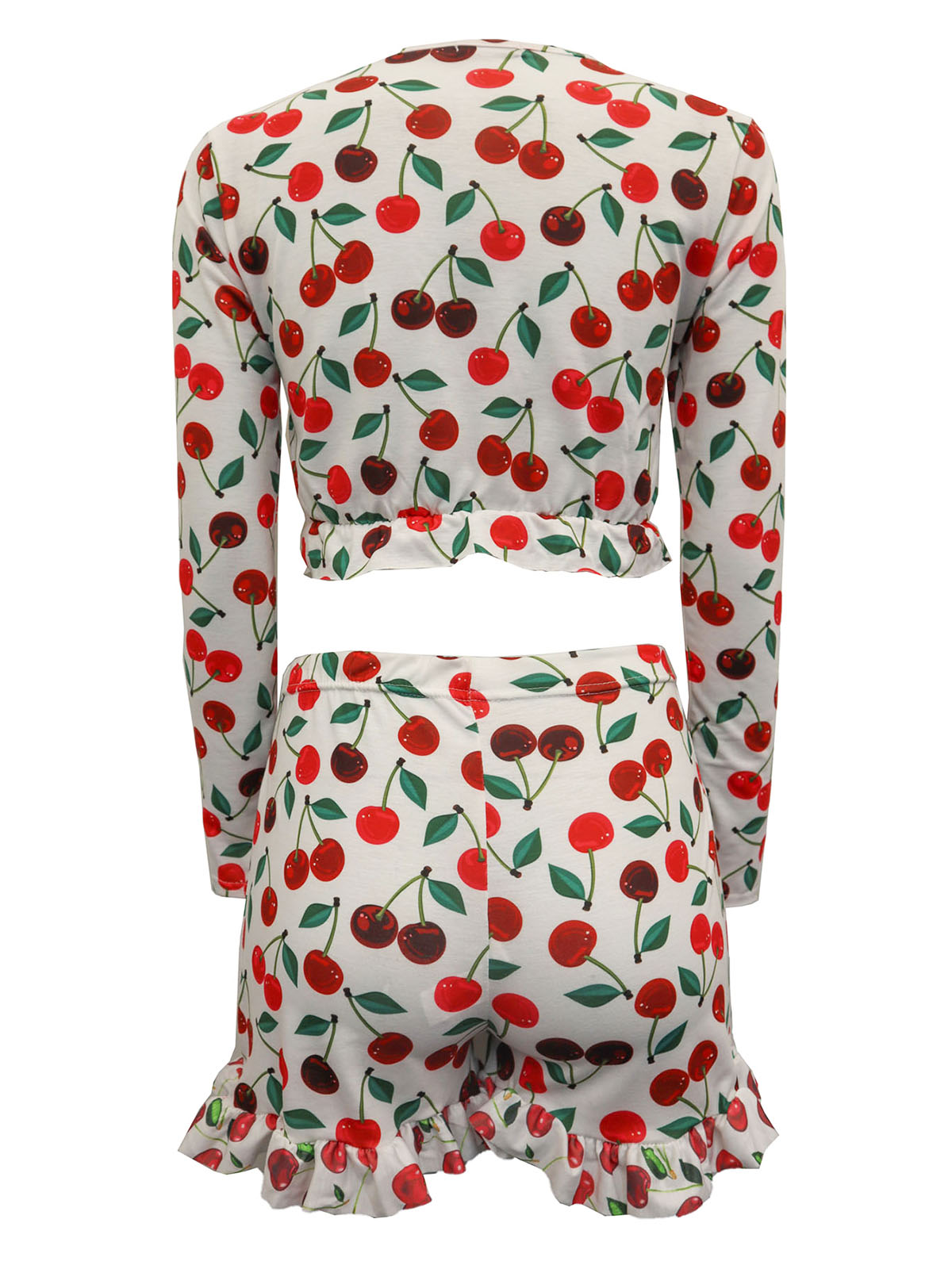 Cherries Print Frill Hem Pyjama Short Set
