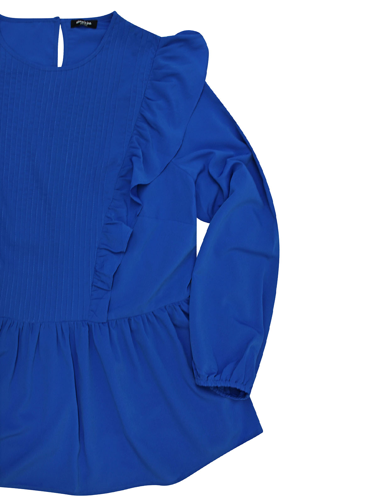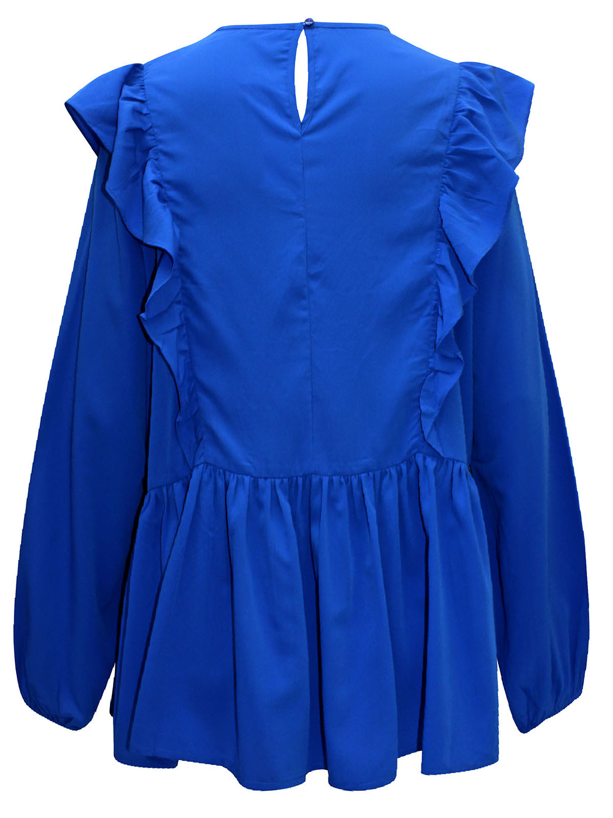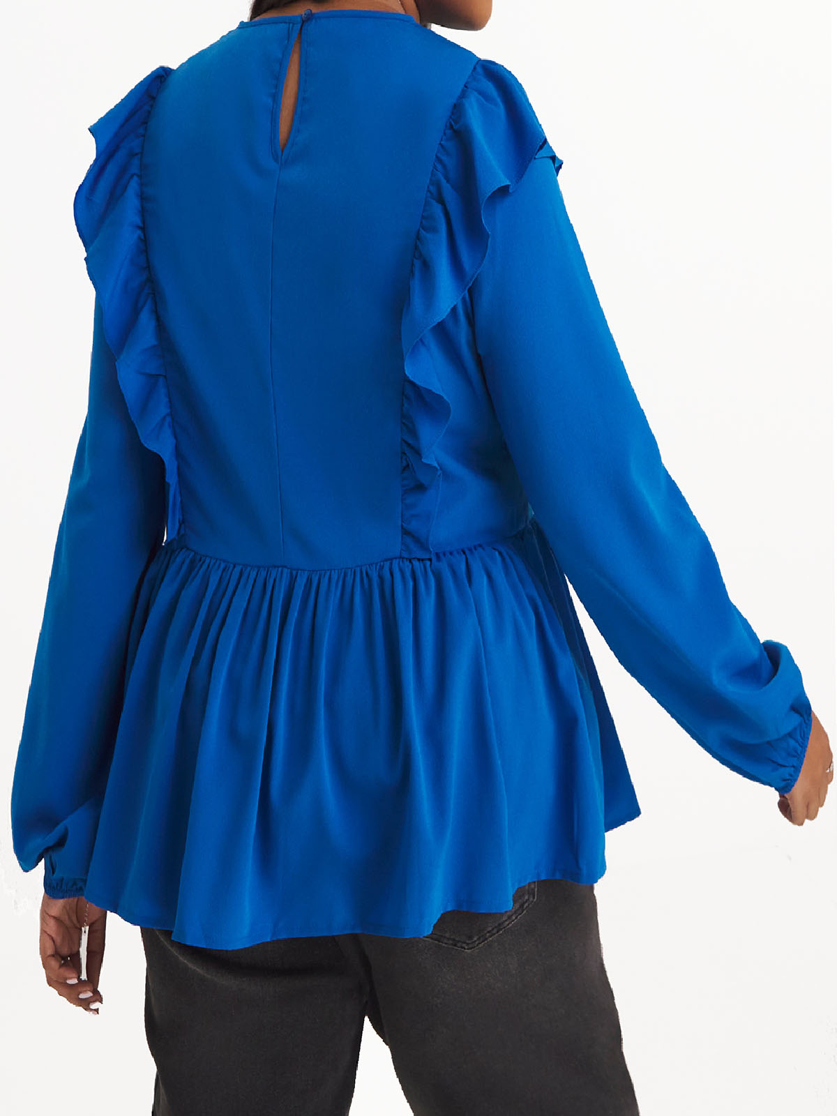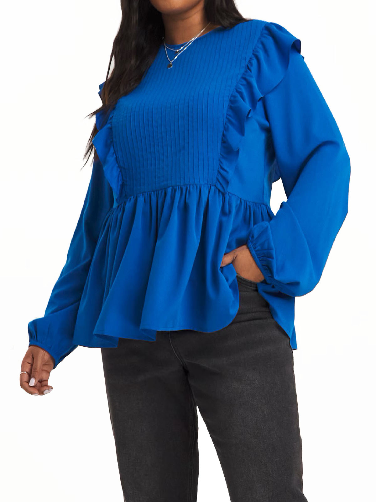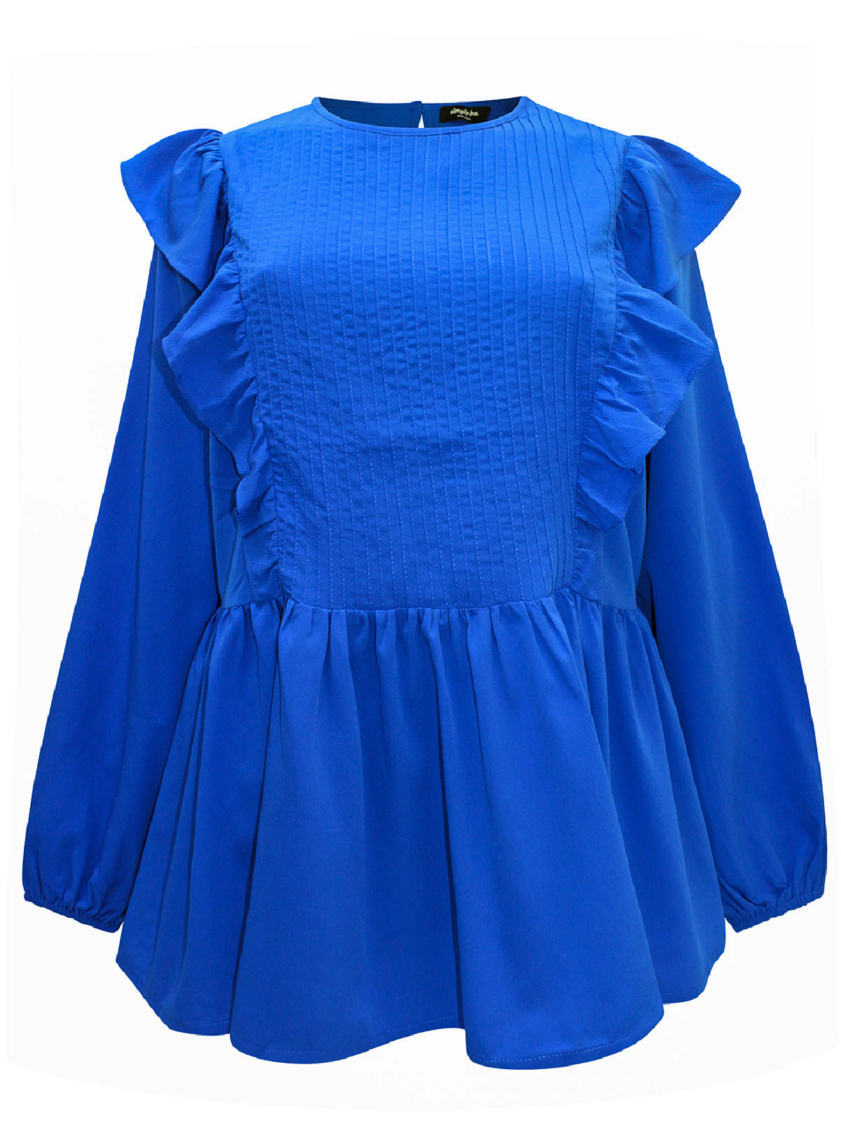 Say hello to your new wardrobe essential. This peplum blouse has a flattering crinkle pintuck front, long sleeves with a frill shoulder detail. A peplum waist detail for comfort and perfect fit. Length 27in/69cm.