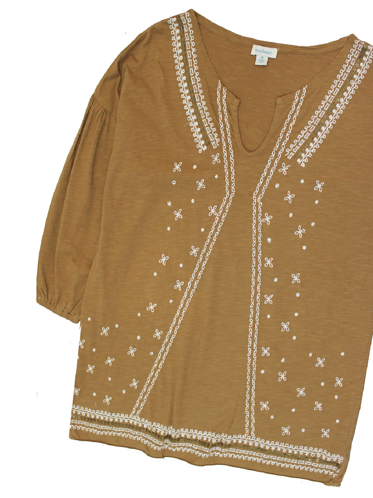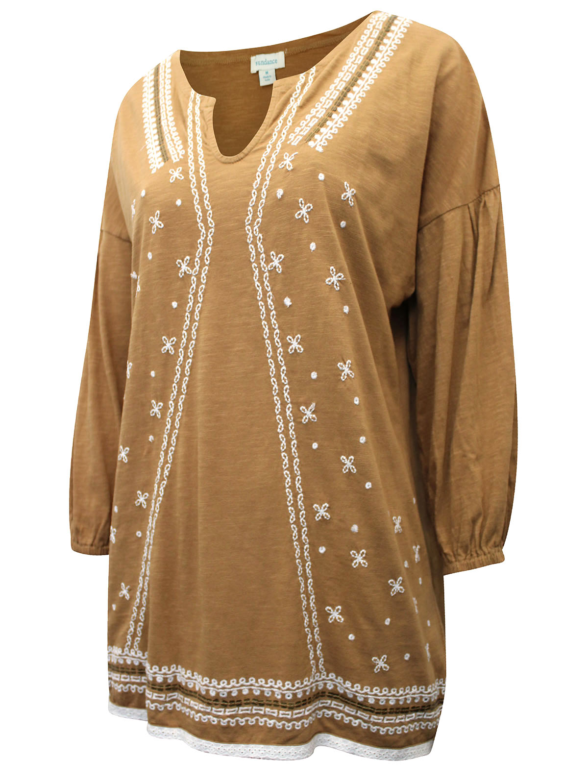 Boast beautiful boho style with this relaxed, embroidered top. Cut from a cotton fabric this piece features a modest round neckline, complete with a cute keyhole cut out. It boasts 3/4 length sleeves adorned with delicate embroidery. Length 26in.