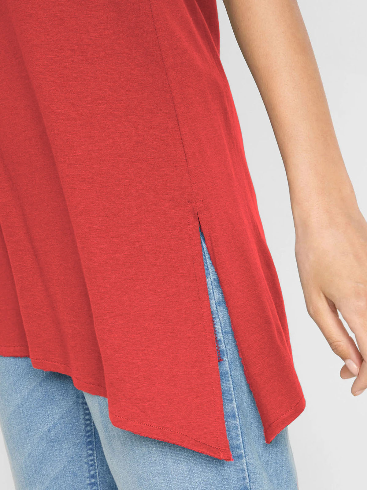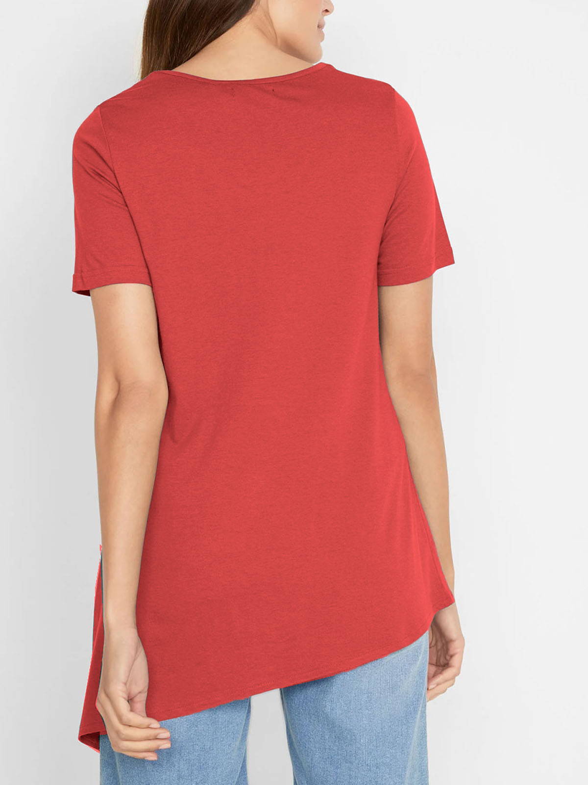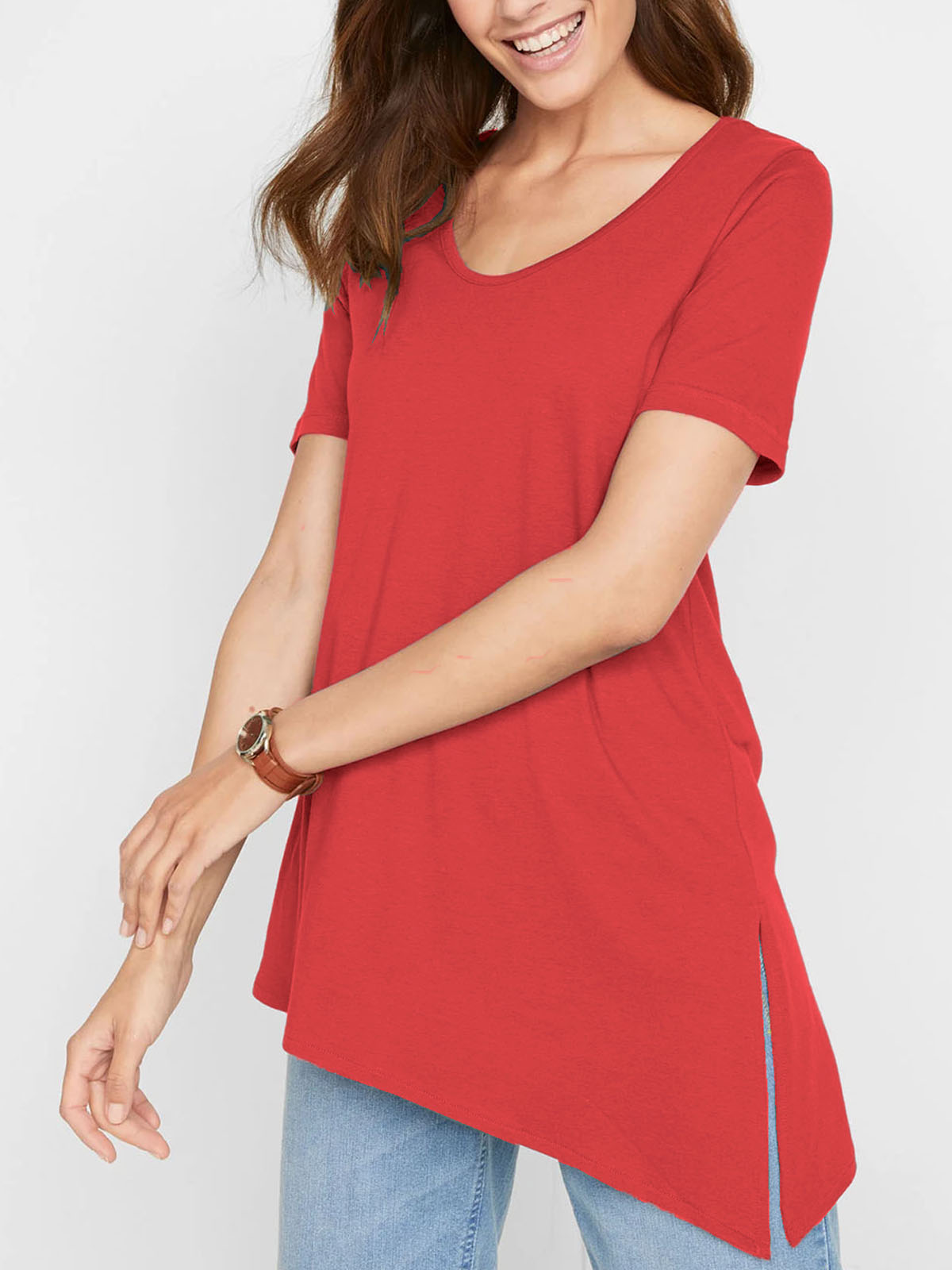 The perfect top for dressing up your denim. Made from a jersey fabric, it features a scoop neckline with short sleeves and an asymmetric hem, complete with split detail. Length 31in.