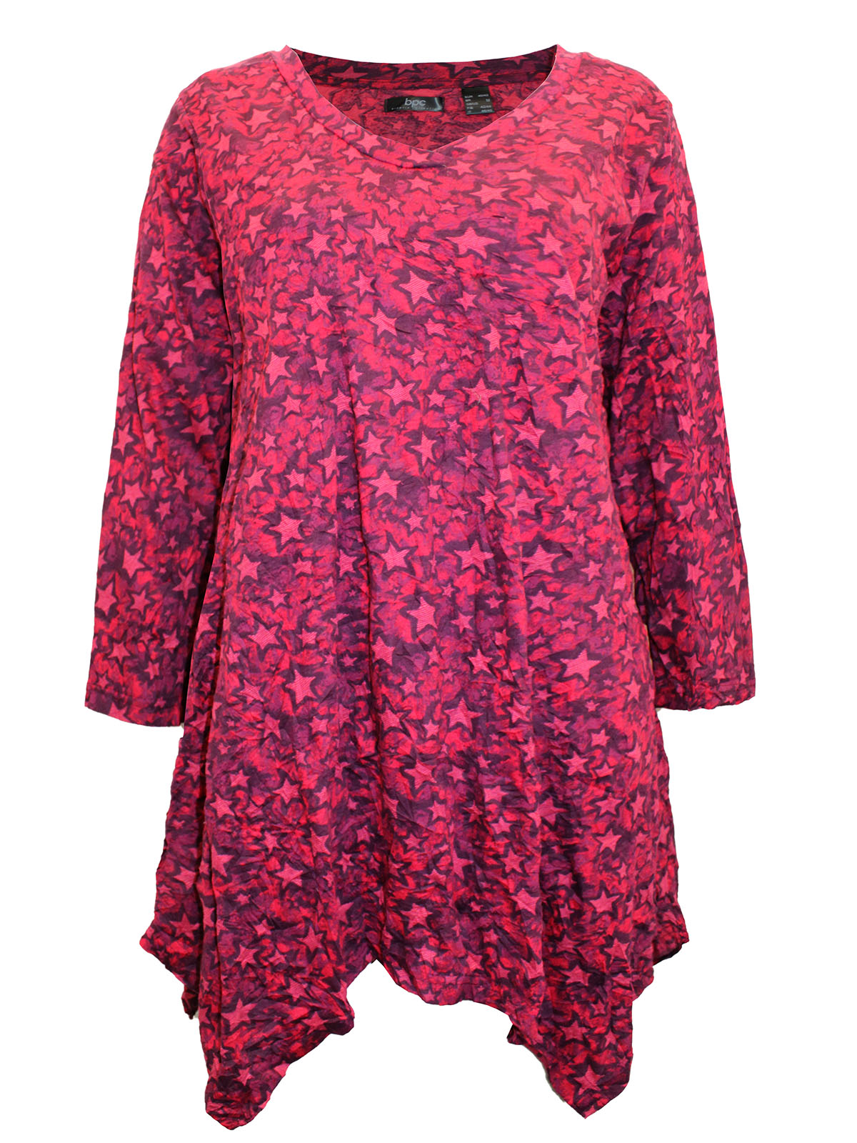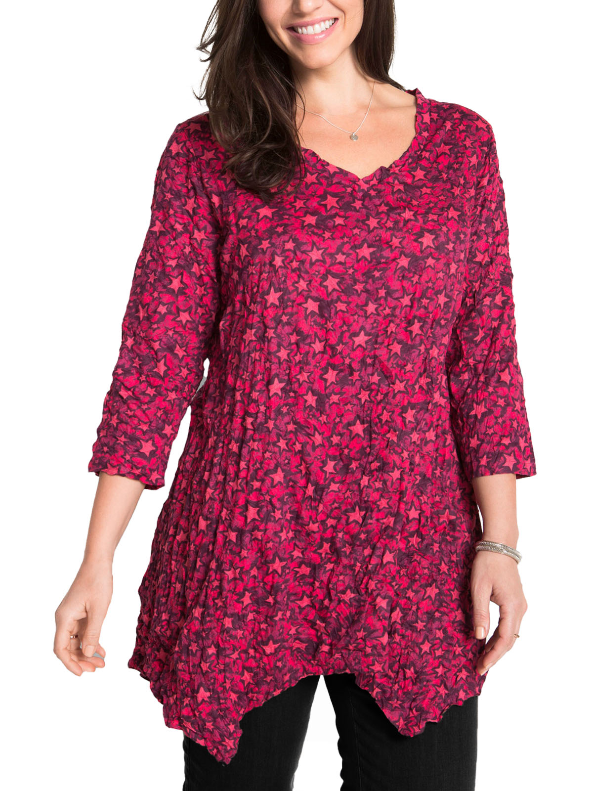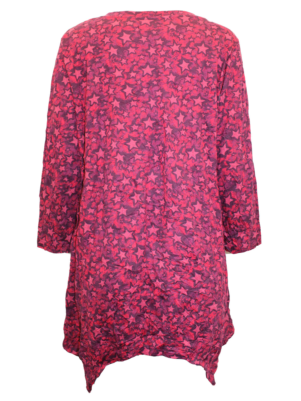 Cotton Blend Star Print Trapeze Hem Crinkle Tunic