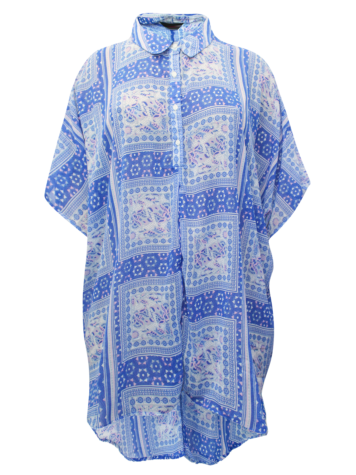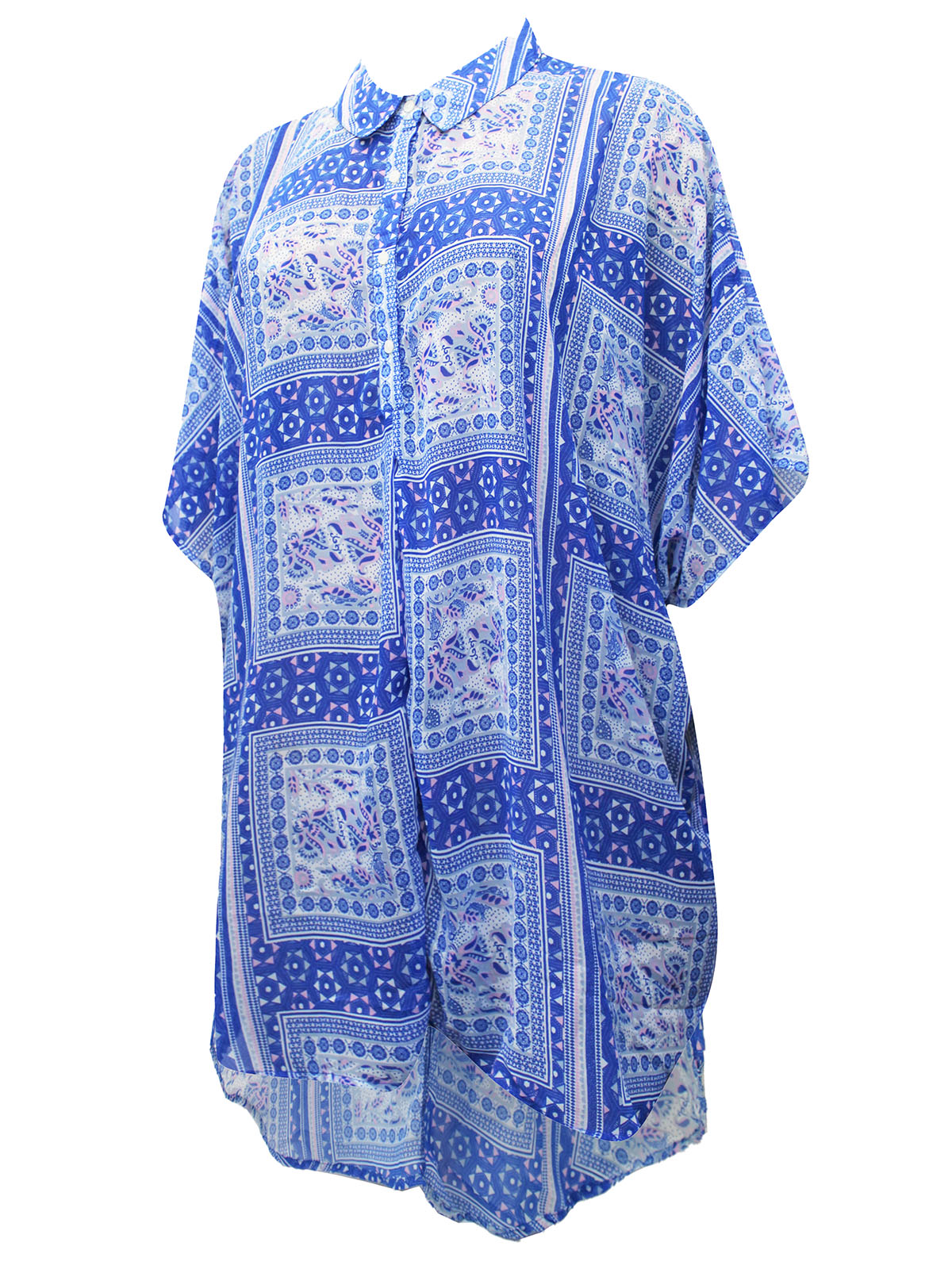 Keep it simple and stylish with this new-in blouse. Made from a comfortable woven fabric, it features a half-placket design with short sleeves and a collared neckline. Length 34in at front and 41in at back.