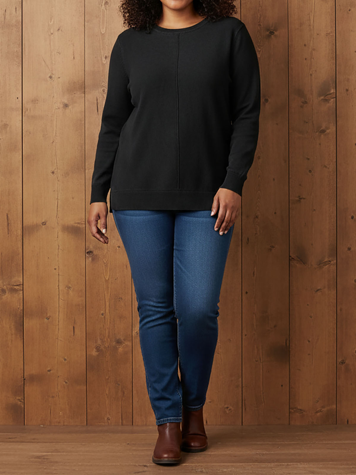Update your jumper collection with this knitted jumper. Made from a comfortable knitted fabric, it features a front & back seam detail, step hemline, crew neckline and long sleeves. Length 29in.