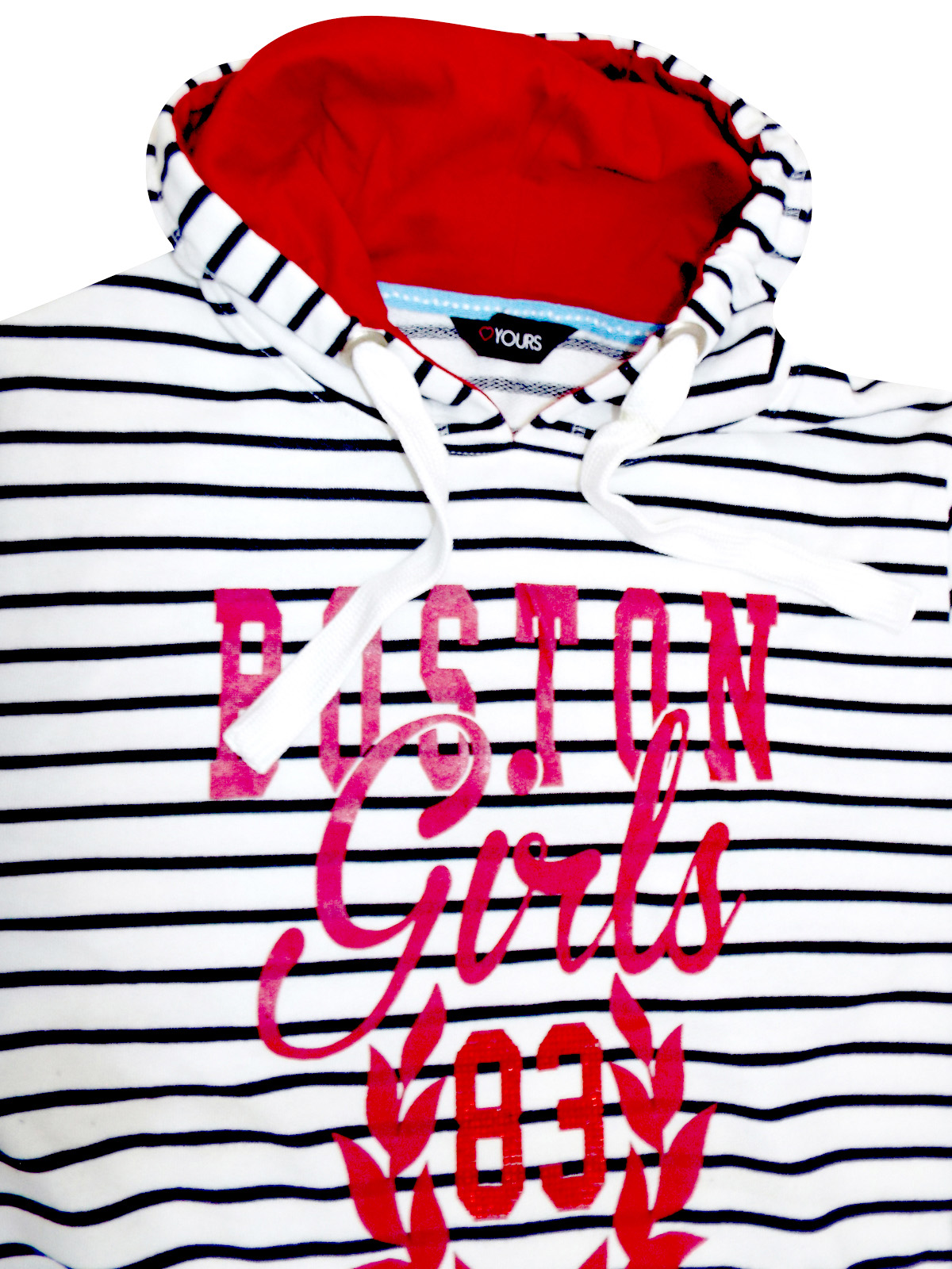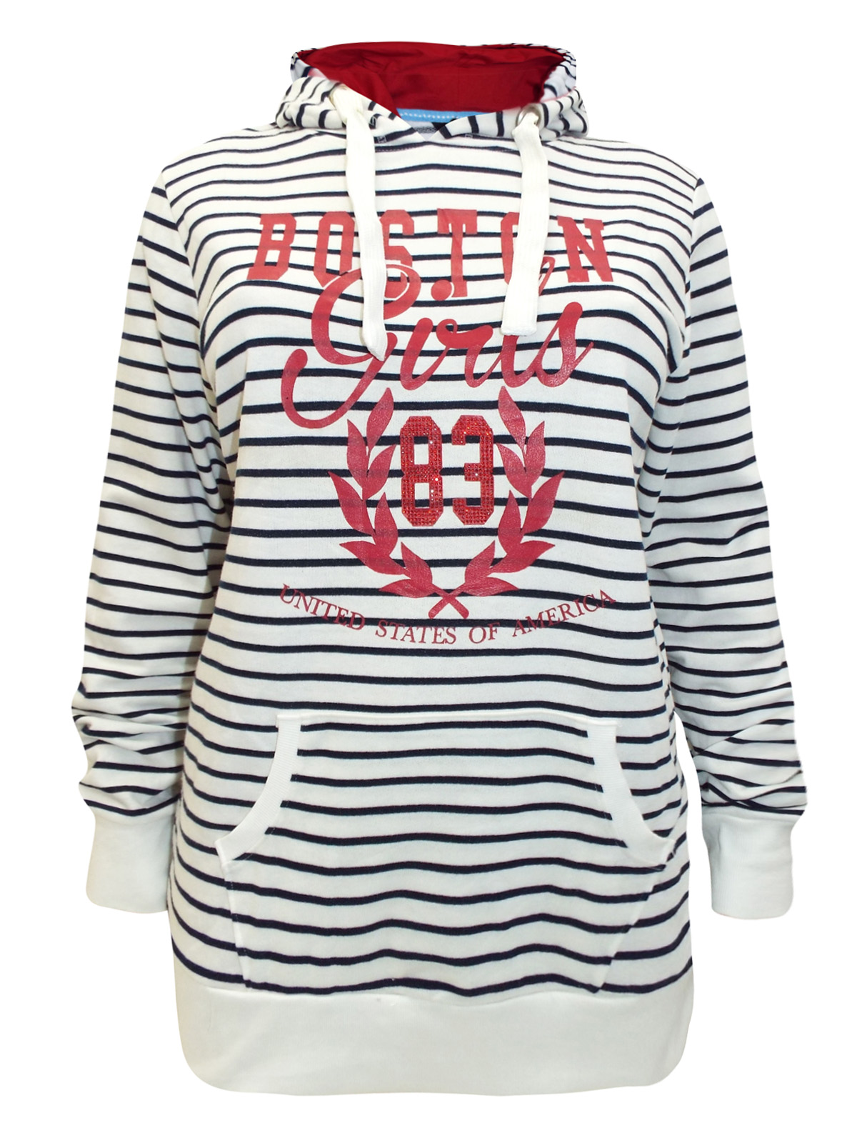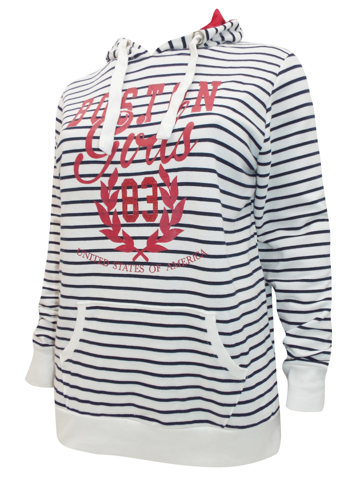 Cosy up in this cotton rich striped hoodie is great for off-duty days. In an easy-to-wear pull-on style, it features long sleeves, pouch pocket and a hood with an adjustable draw cord.