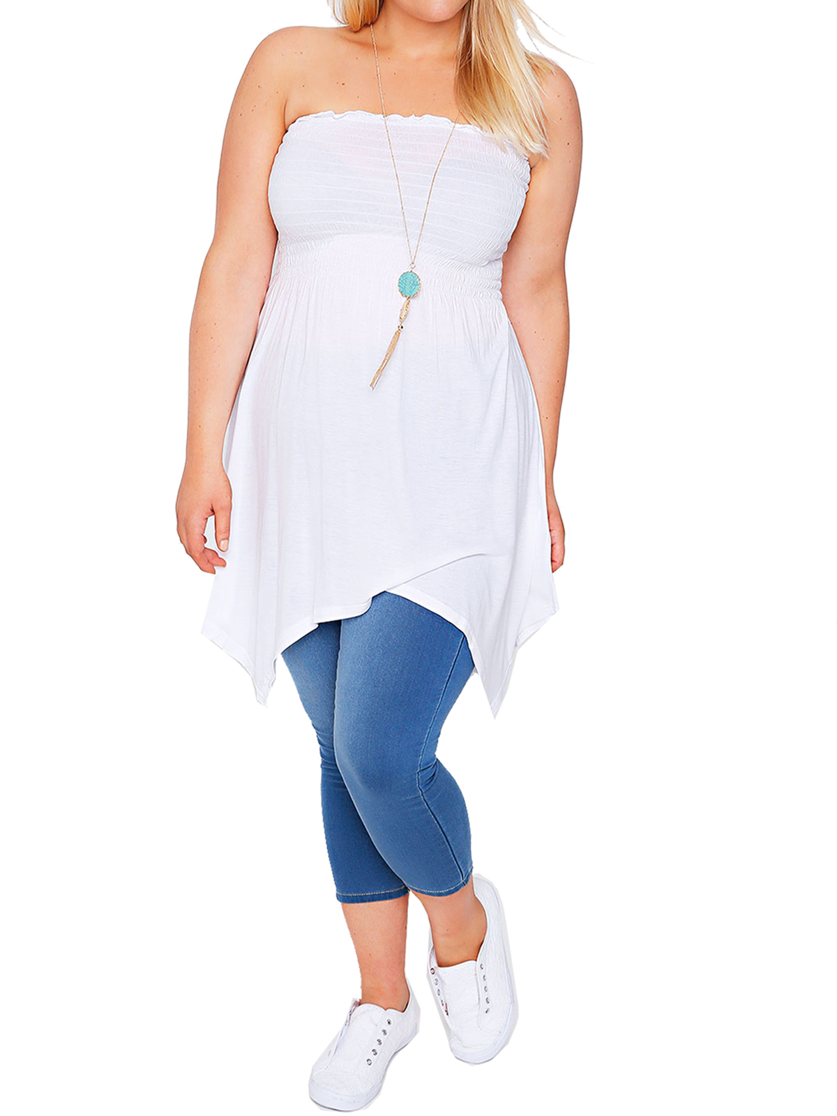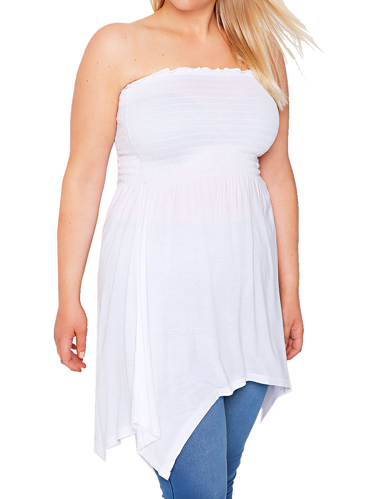 Plus Size WHITE Smocked Bandeau Top