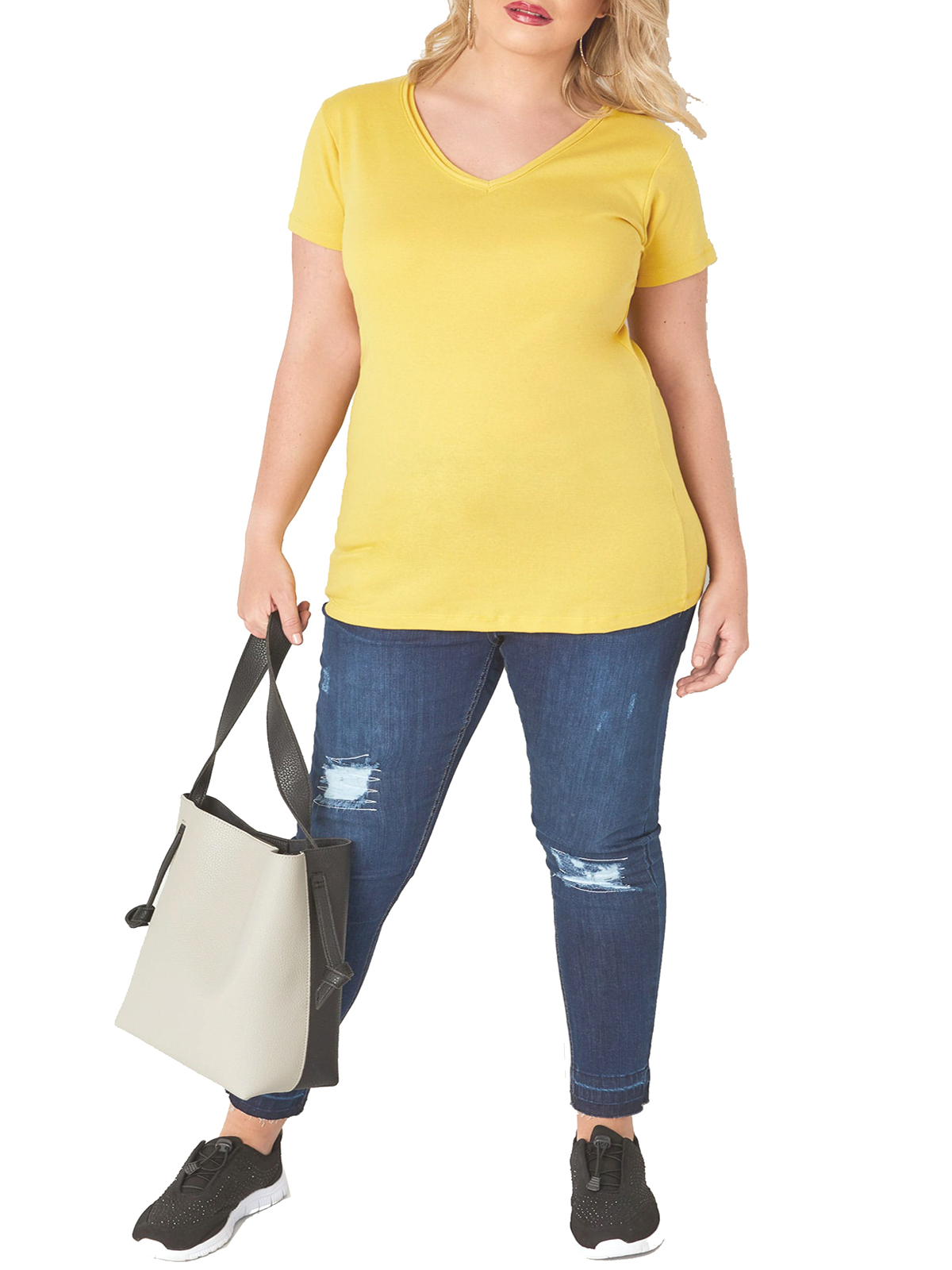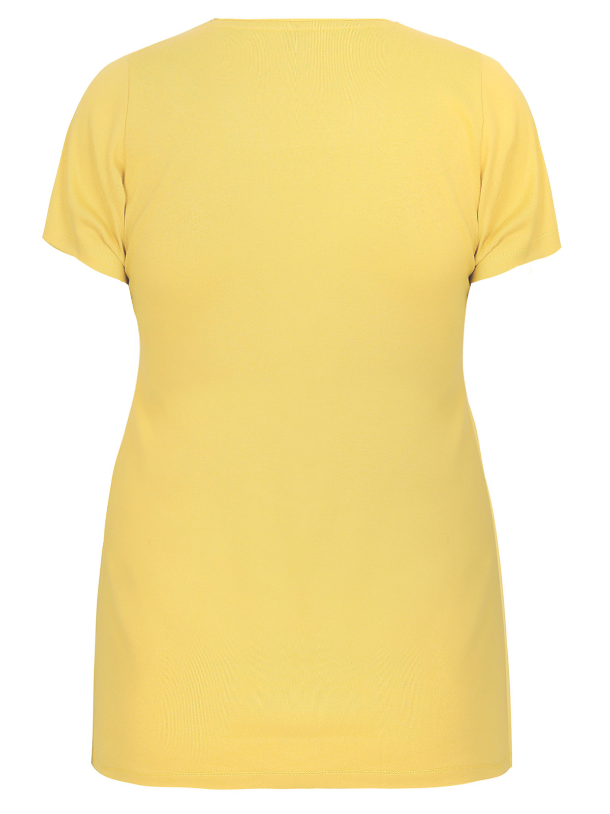 Plus size yellow tee with short sleeves and v-neckline. Made from a 100% cotton jersey fabric for extra comfort. Length from 28in/72cm.
