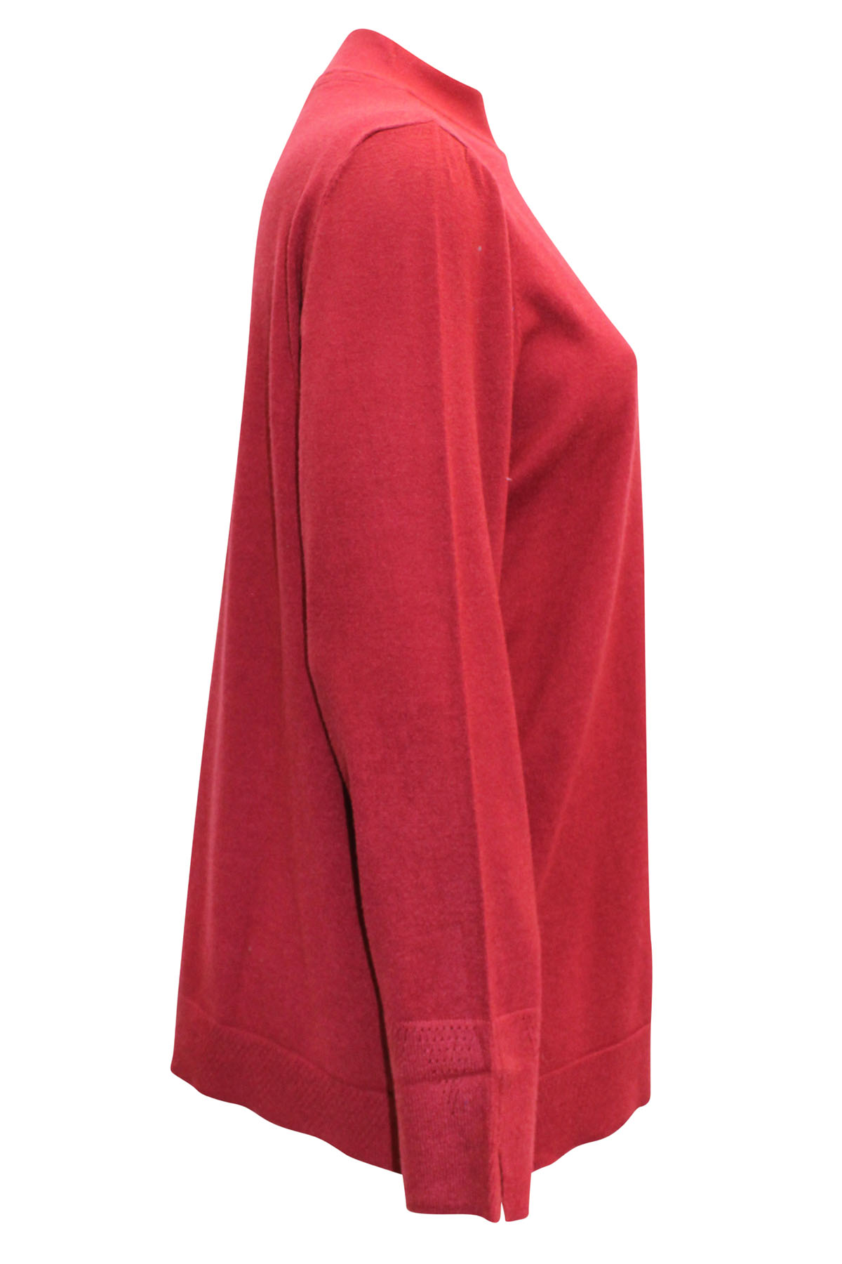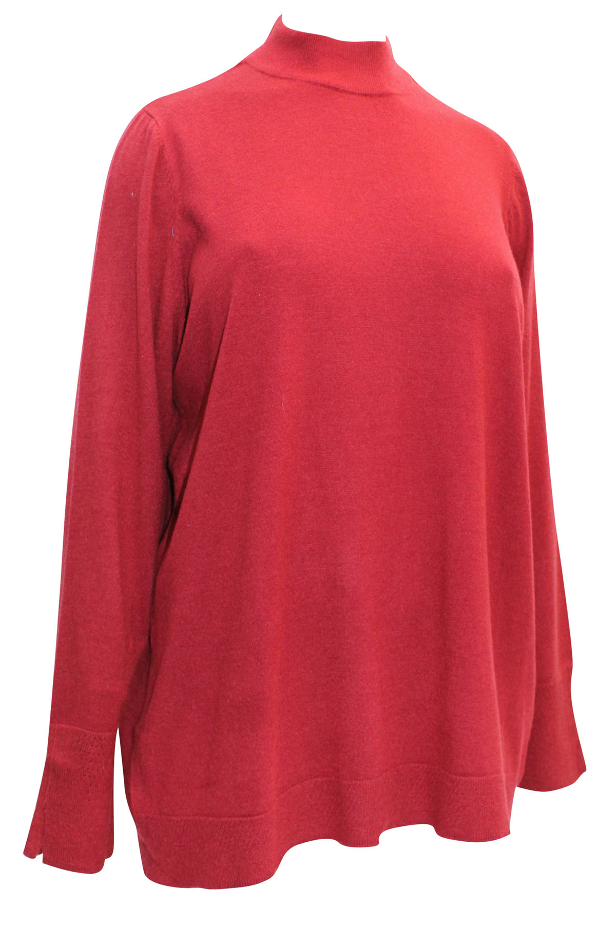 DARK-RED Curve Funnel Neck Pointelle Trim Jumper - Plus Size 14/16 to 34/36
