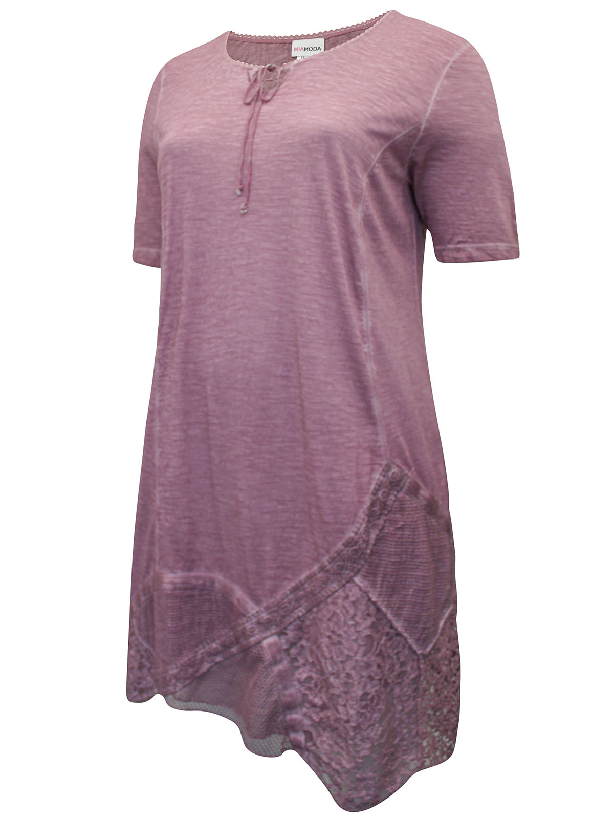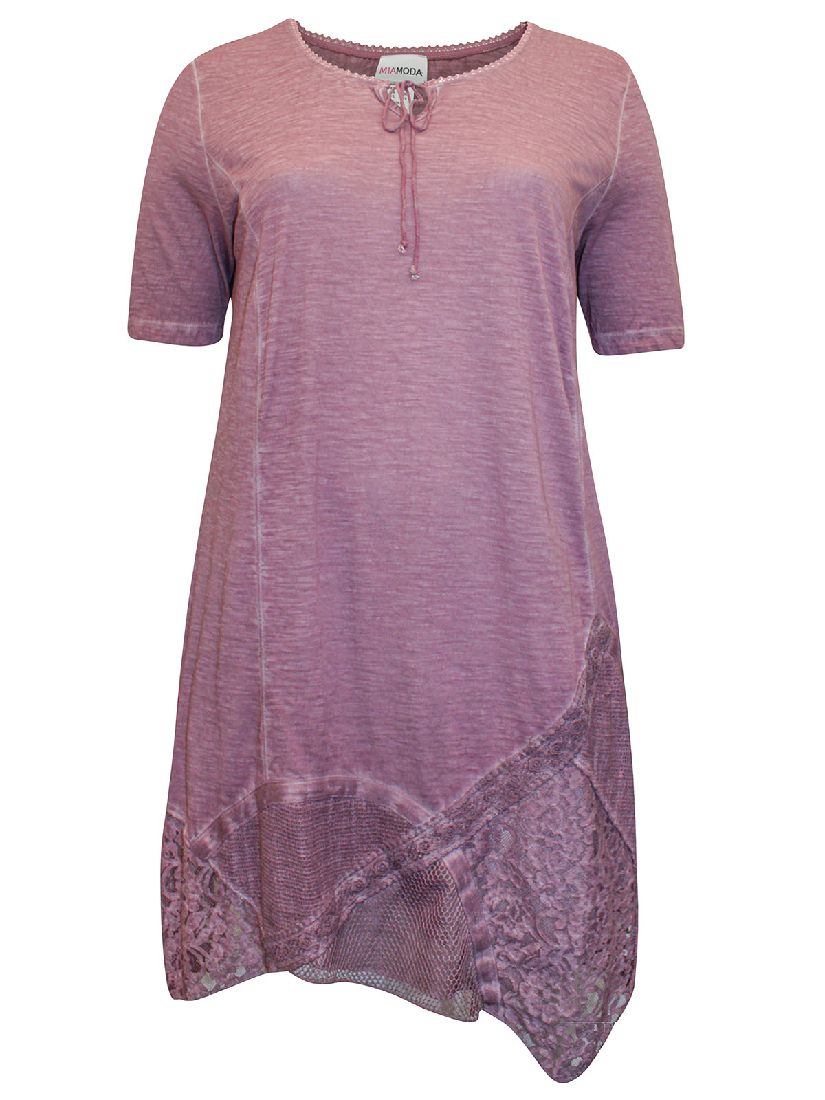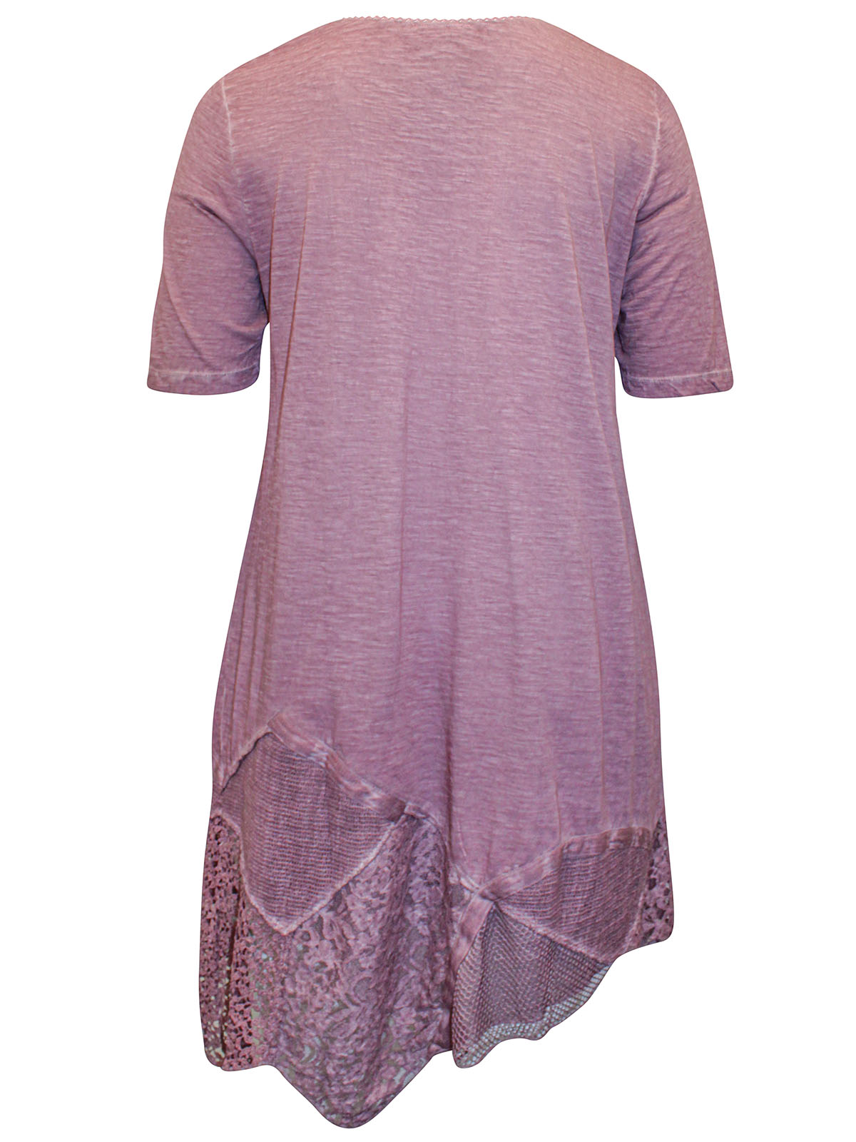 Add a touch of trend to your casual looks with this patchwork border top. Featuring a scoop neckline with functional ties and short sleeves. Length 38in.