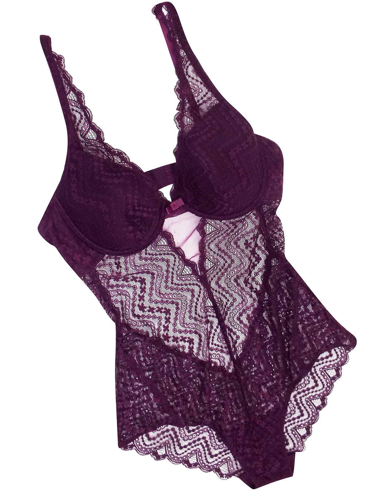 This sexy lace body is a lingerie drawer essential, which has been designed in a pretty sheer geo lace. Padded with adjustable straps and rear hook fastening.