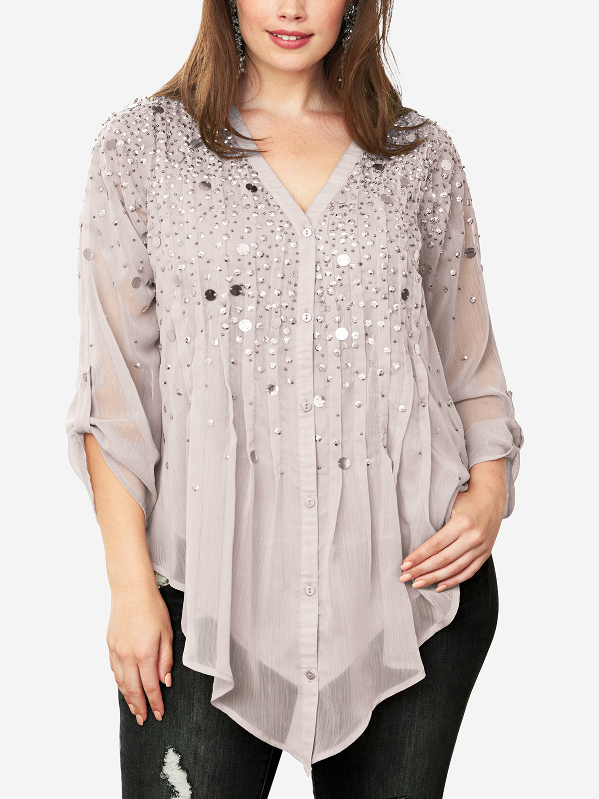 A mixed pack of ladies blouses with a variety of styles and colors and lengths.
