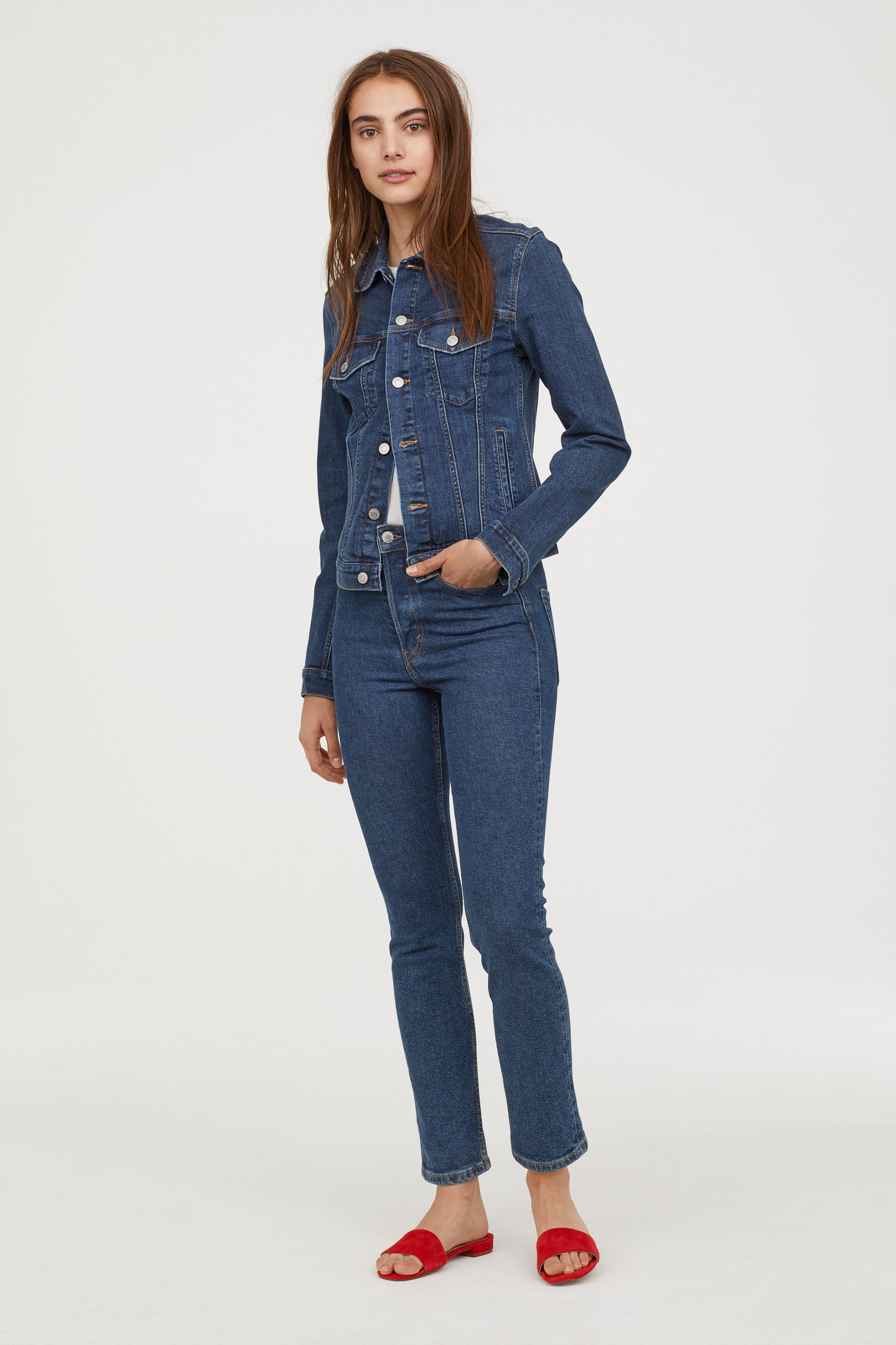 No wardrobe is complete without the classic denim jacket. Featuring a collared neck, multiple pockets and contrast stitch. Finished with silver button through fastening. Length 22in.