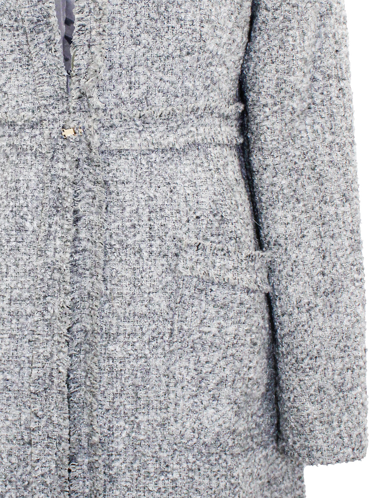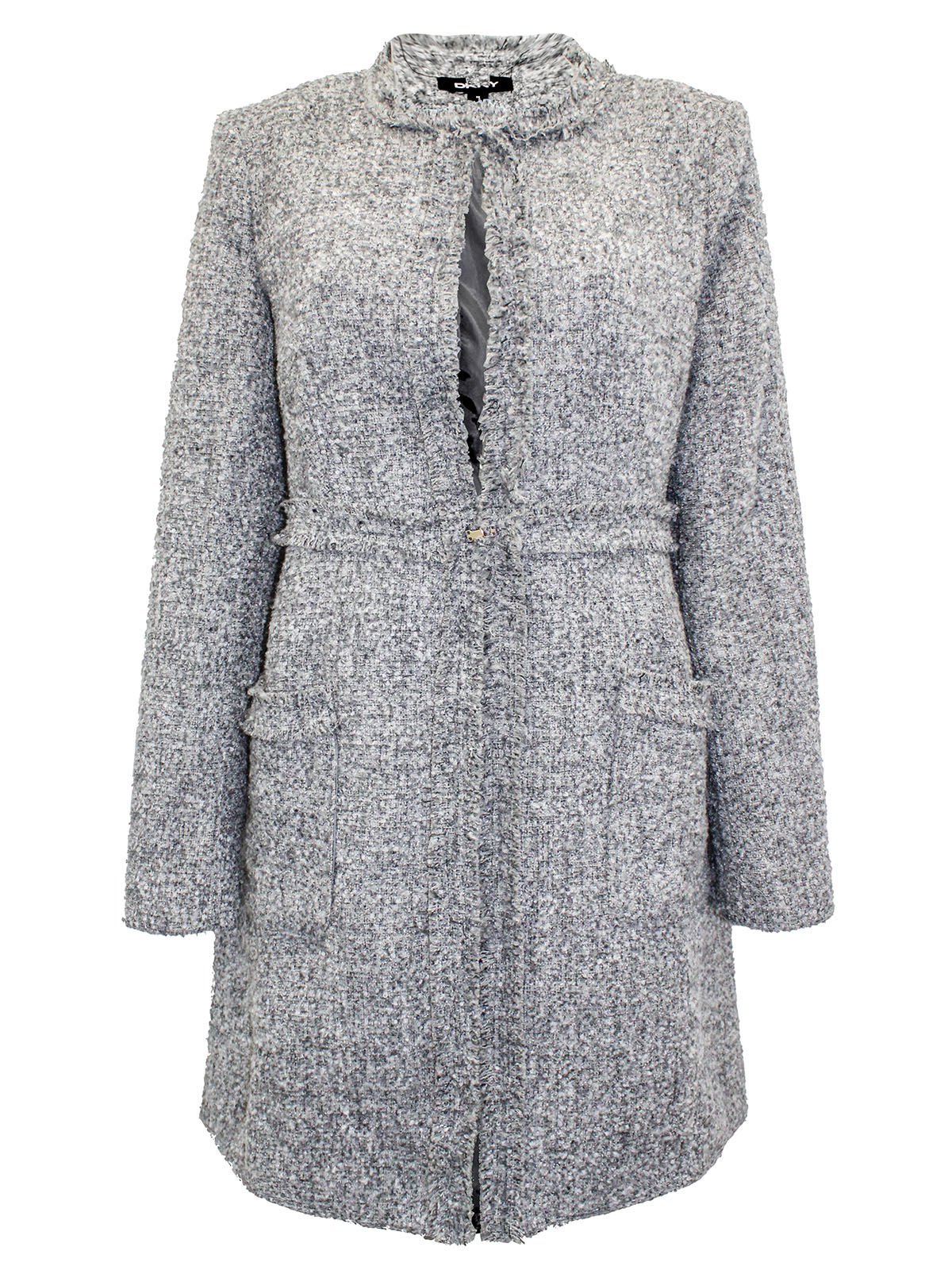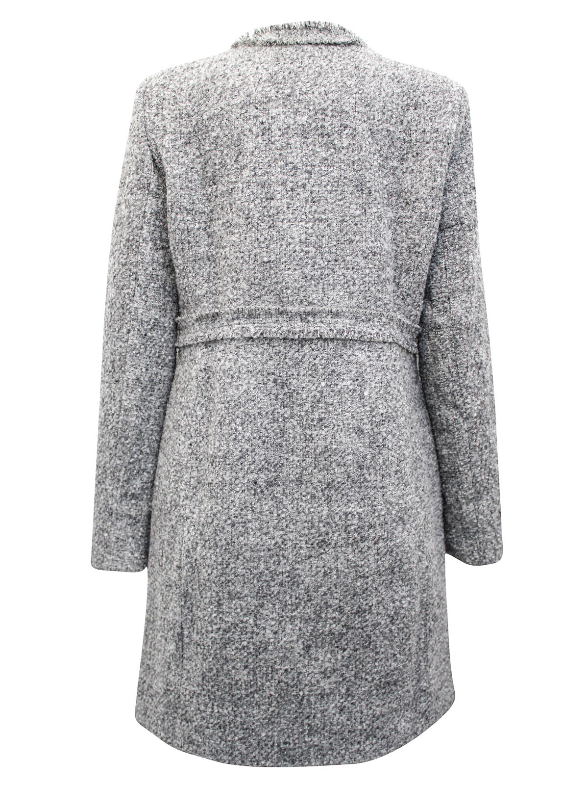 This form fitting plus size coat will ensure your ready for the colder months. Made from a textured fabric, it features long sleeves, Gold hook clasp fastening and two front pockets. Length 38in.
