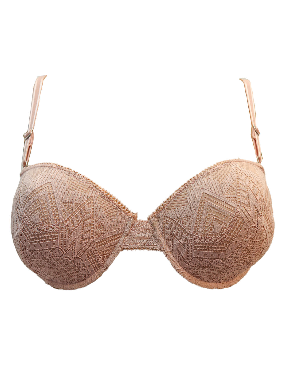 This bra combines elegant lace with reliable support. The padded, wired cups enhance shaping, while the soft floral lace offers a delicate feminine look. Adjustable straps ensure all-day comfort and a secure fit, with hook fastenings at the back.