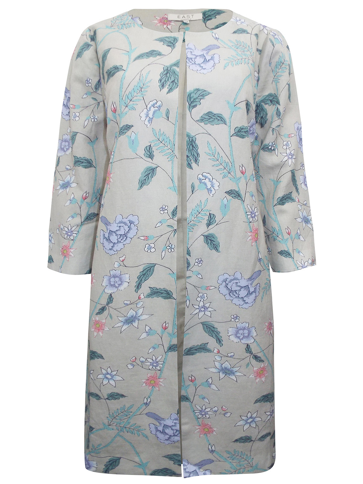 This longline jacket will really make you look your best this season. Finished with a round neck with a hook fastening, it’s a look you can dress up or down to suit your mood. Finished with two pockets and an all over floral print. Lined. Length 40in.