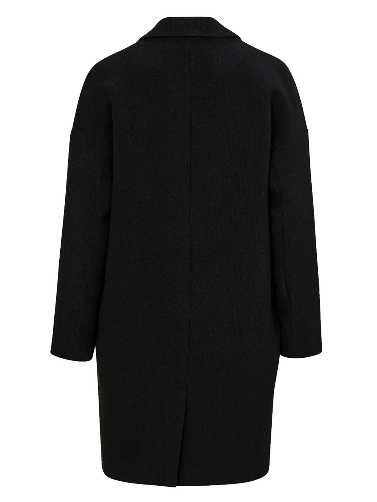 Coat Beyonce in a stylish cocoon model with low shoulder seams and hidden buttons at the front. Slit in the bottom center back. Made in woven quality and lined in thin, woven quality. Length 95cm in size 36.