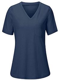 BLUE Pure Cotton Broderie Hem Top - Plus Size 16 to 32