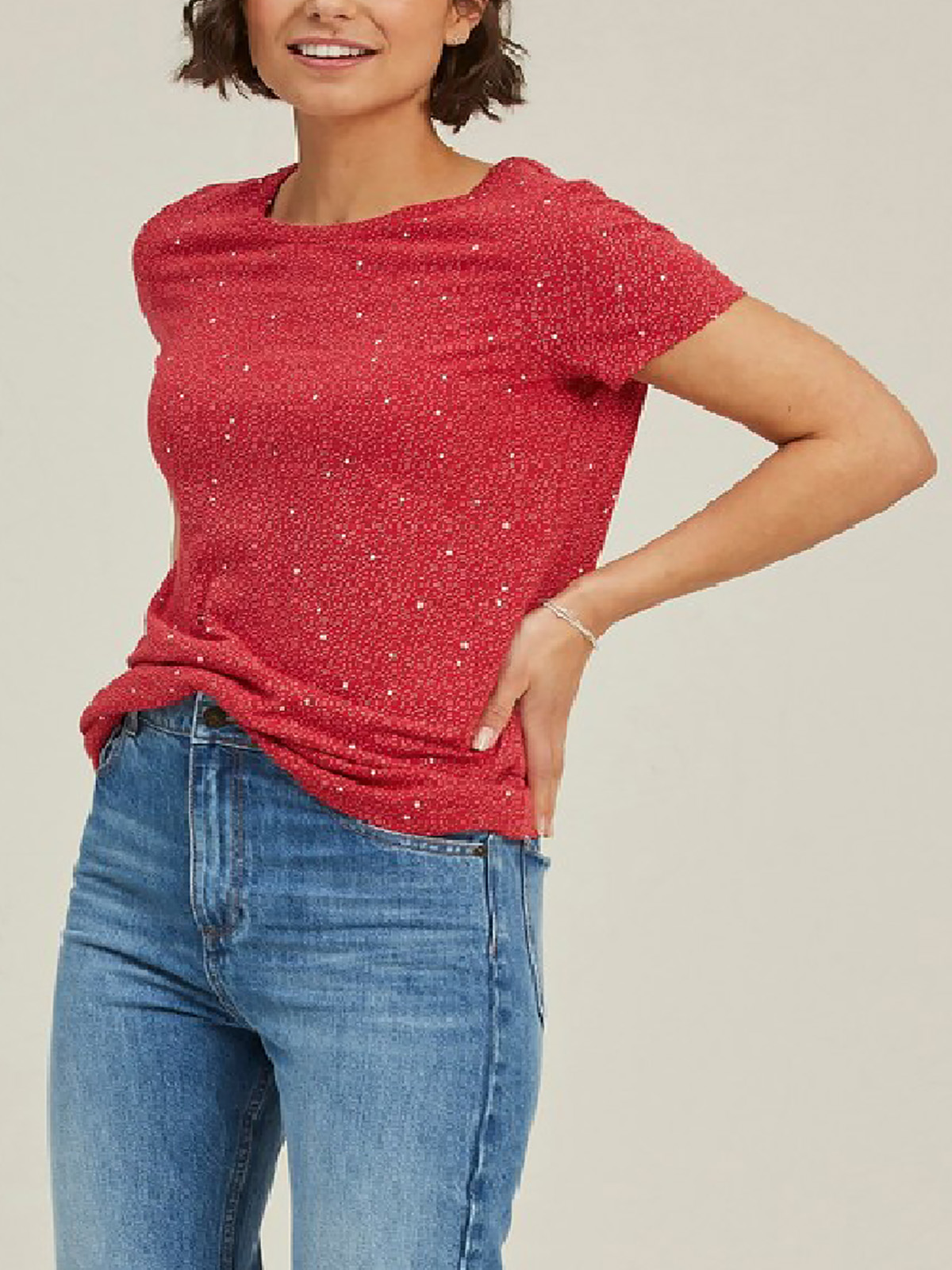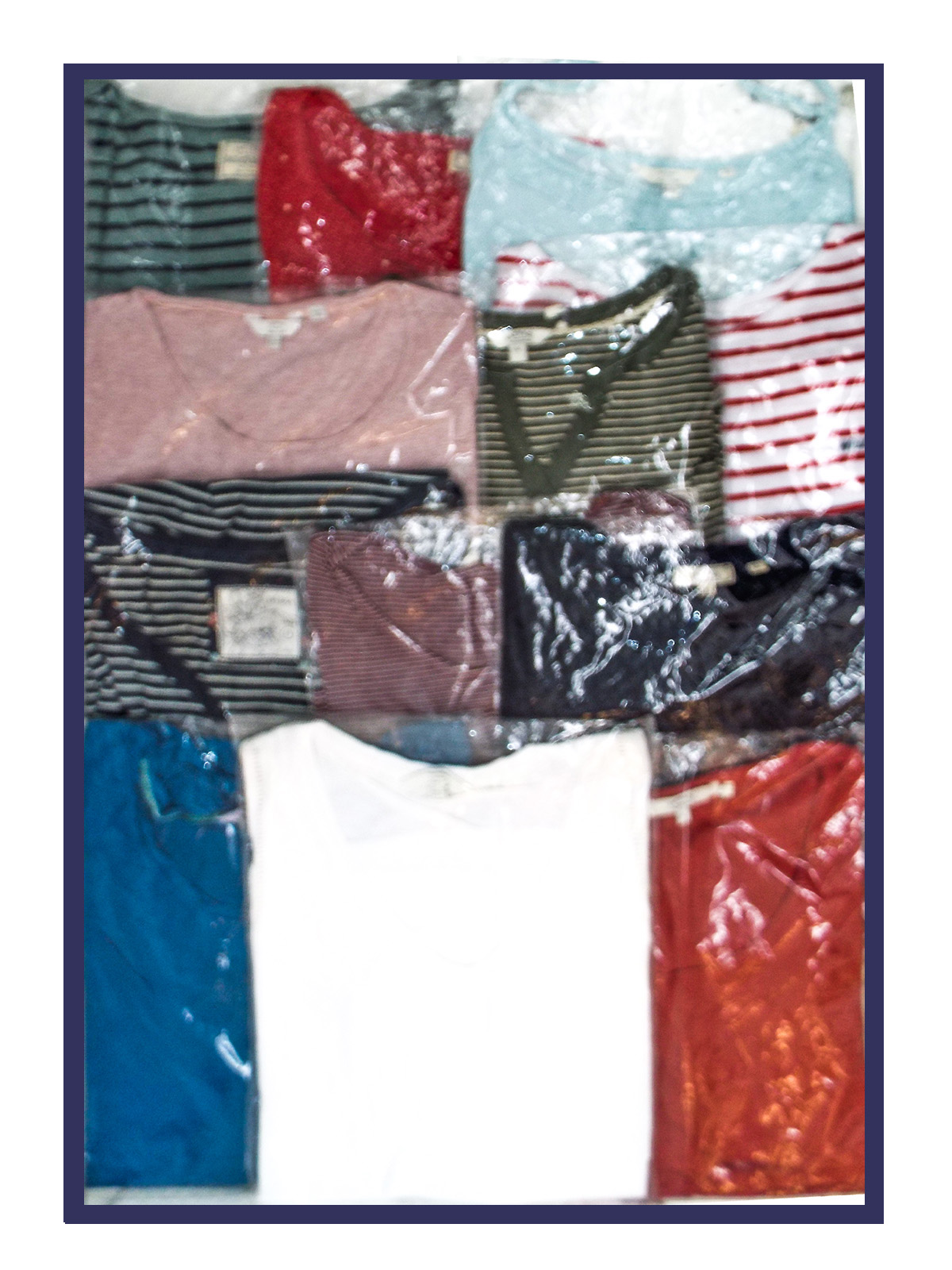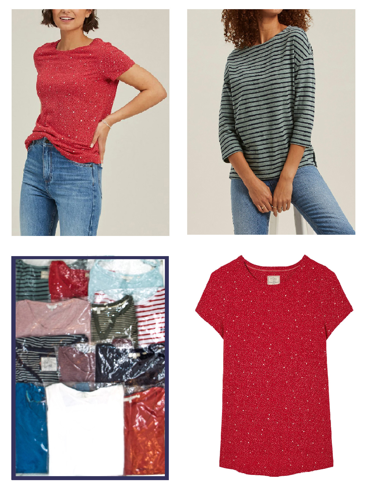 A mixed pack of plain, striped & textured tops with a variety of styles, colors and lengths.
