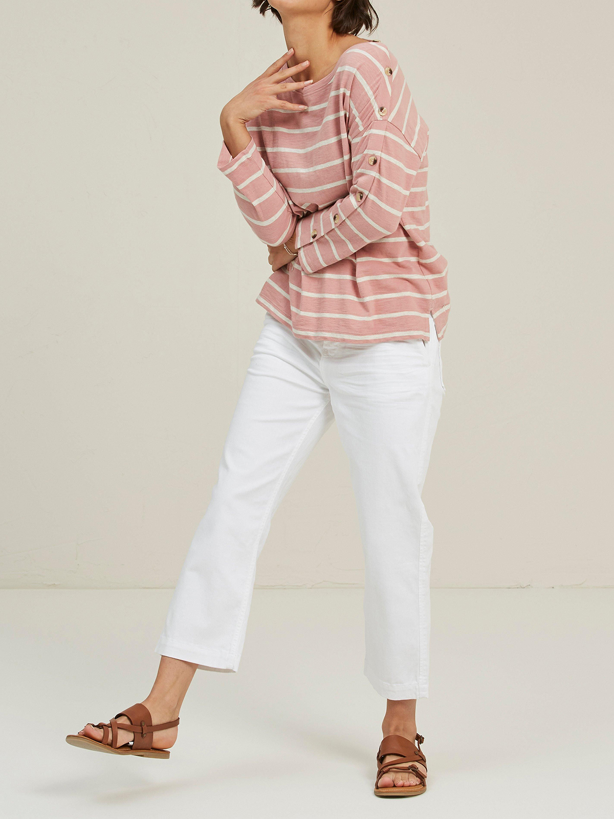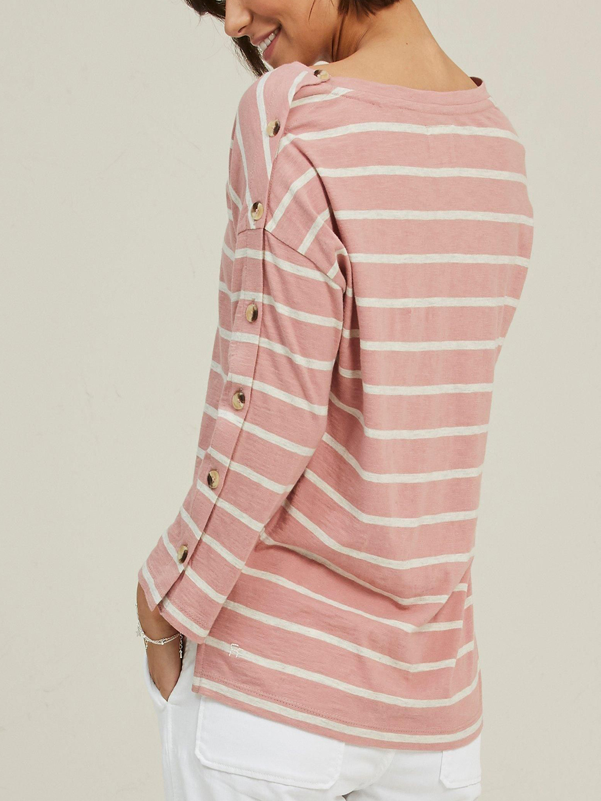 Kinsley Drop Shoulder Stripe Top - Pink Shrimp